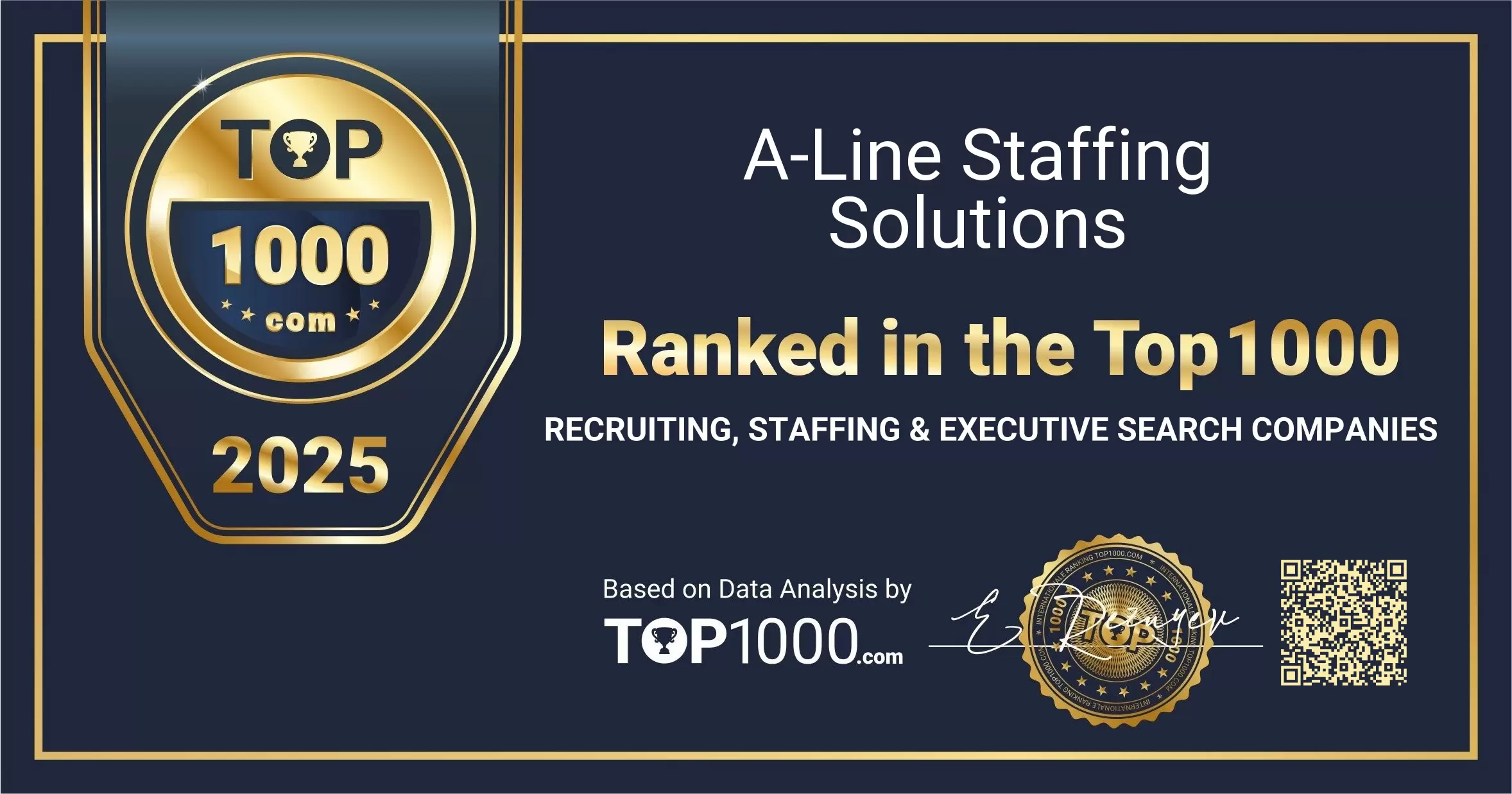 Earning a place among the Top 1000 Recruiting, Staffing & Executive Search Companies reflects strong visibility and trust from both employers and candidates. This recognition celebrates the sustained effort of A-Line Staffing Solutions to support organisations with high-quality talent solutions and to guide professionals through key career moves.