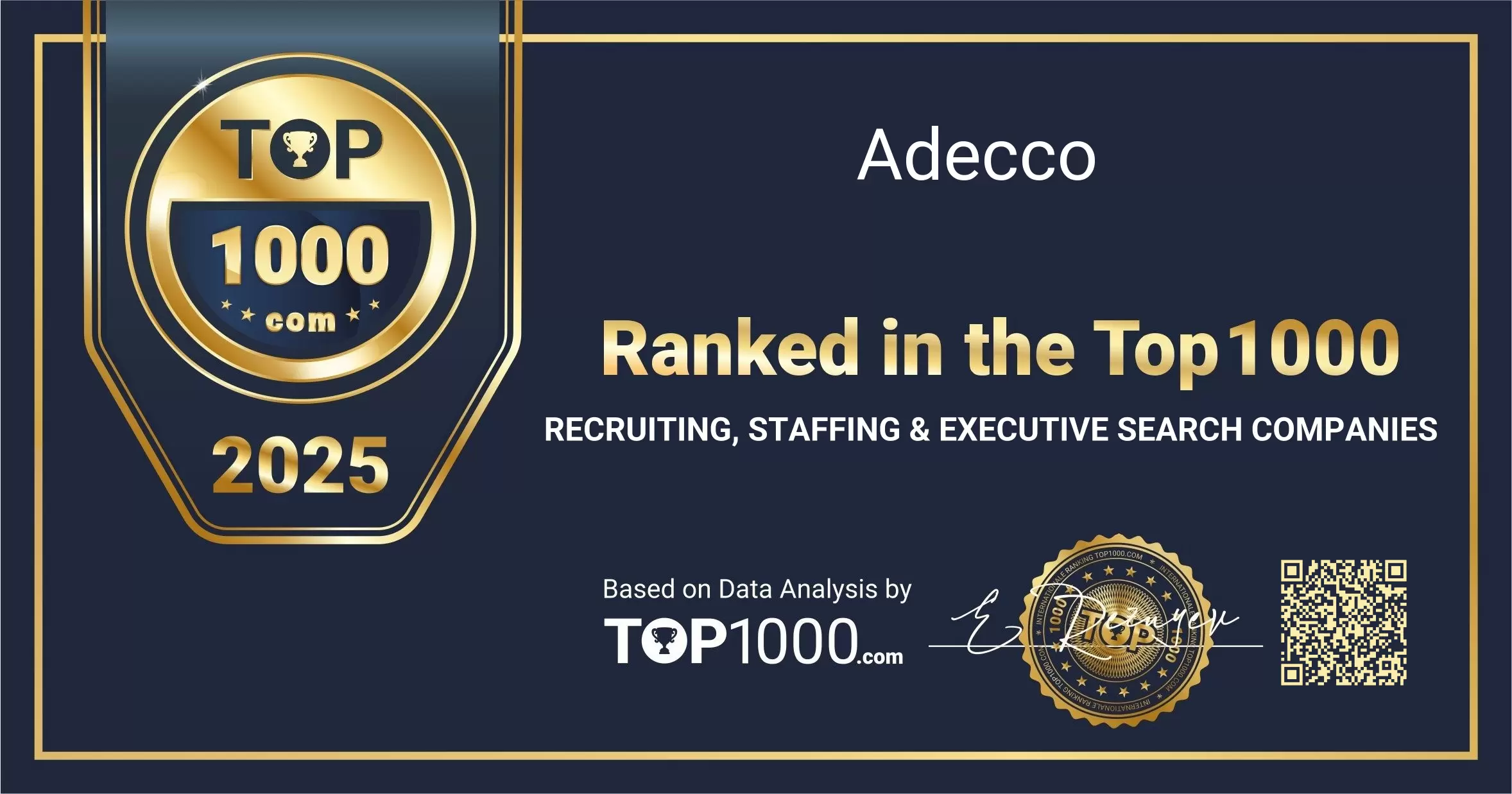 Earning a place among the Top 1000 Recruiting, Staffing & Executive Search Companies reflects strong visibility and trust from both employers and candidates. This recognition celebrates the sustained effort of Adecco to support organisations with high-quality talent solutions and to guide professionals through key career moves.