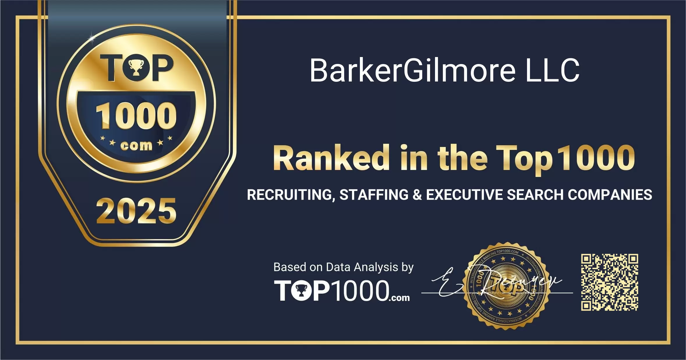 Earning a place among the Top 1000 Recruiting, Staffing & Executive Search Companies reflects strong visibility and trust from both employers and candidates. This recognition celebrates the sustained effort of BarkerGilmore LLC to support organisations with high-quality talent solutions and to guide professionals through key career moves.