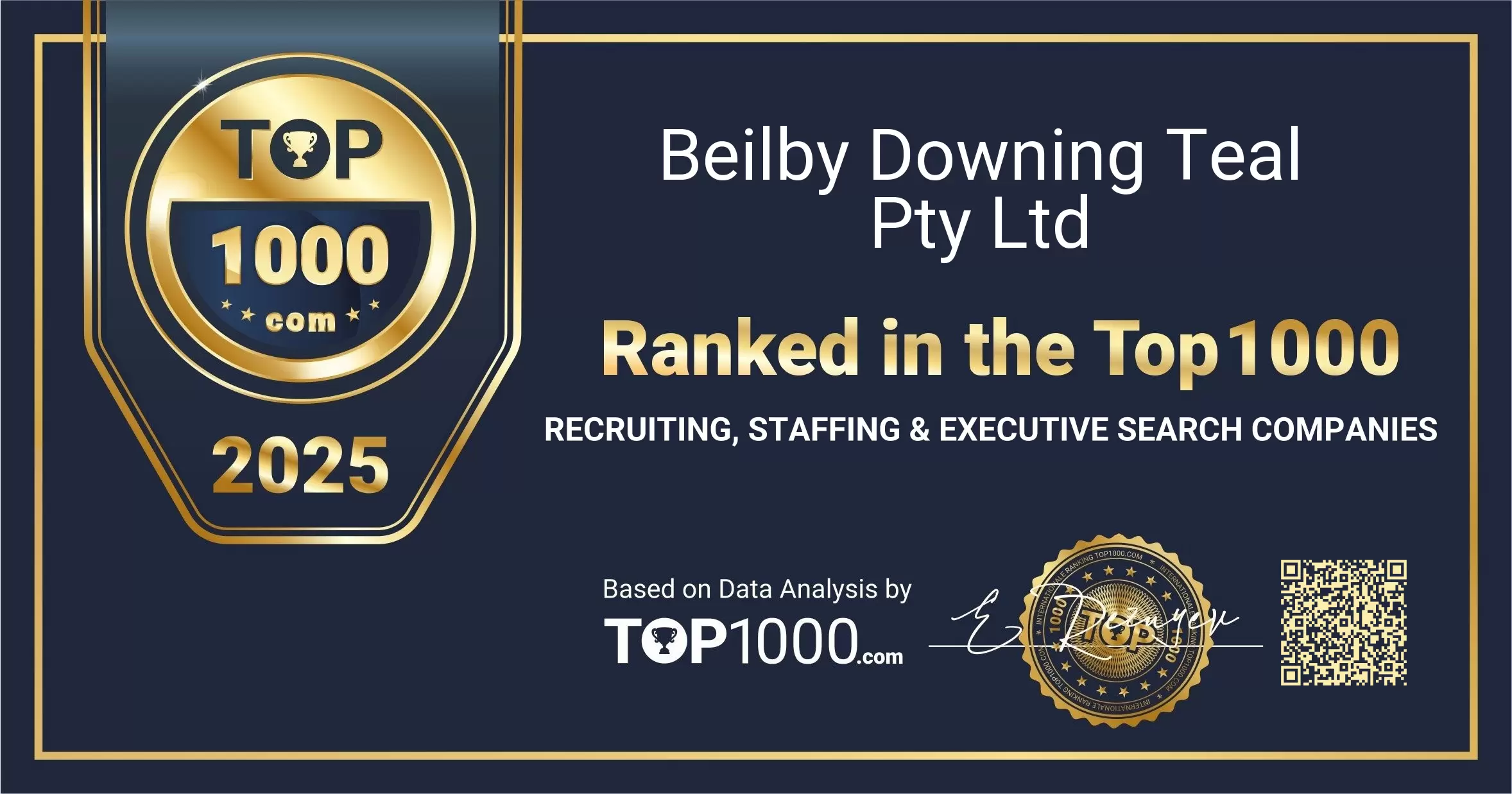 Beilby Downing Teal Pty Ltd ranked in the Top 1000 Recruiting, Staffing & Executive Search Companies