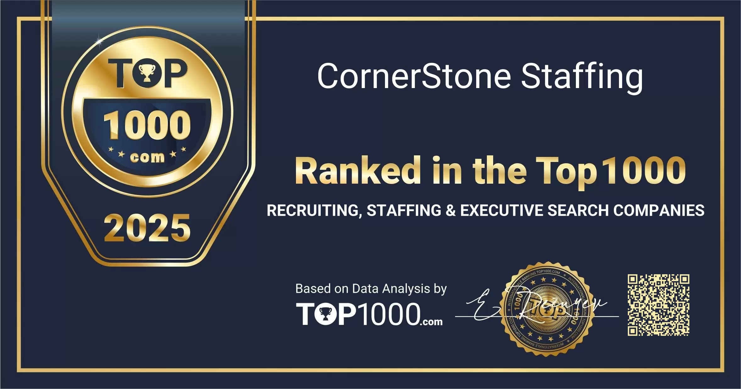 Earning a place among the Top 1000 Recruiting, Staffing & Executive Search Companies reflects strong visibility and trust from both employers and candidates. This recognition celebrates the sustained effort of CornerStone Staffing to support organisations with high-quality talent solutions and to guide professionals through key career moves.