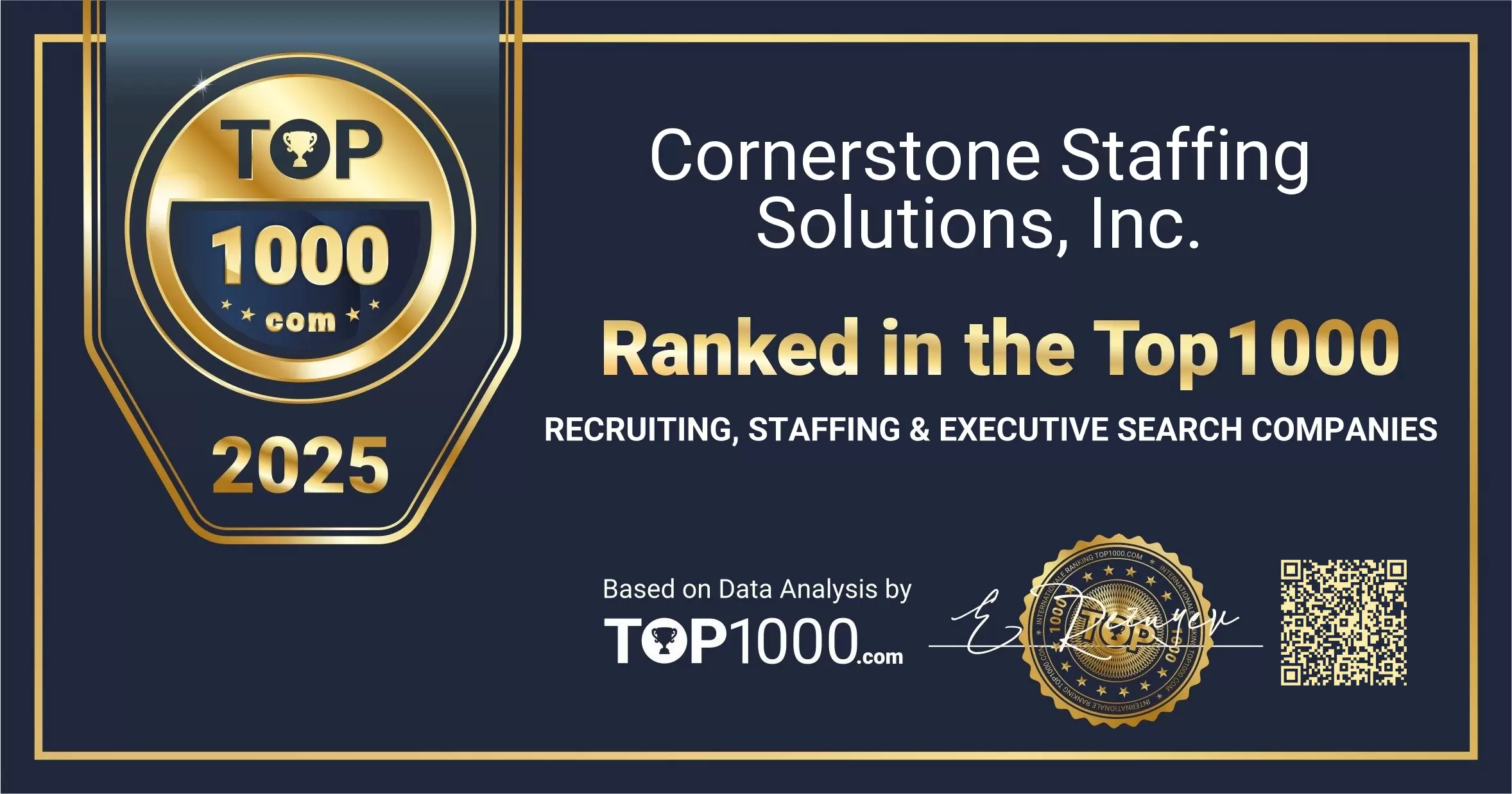 Cornerstone Staffing Solutions, Inc. has been included in the Top 1000 Recruiting, Staffing & Executive Search Companies ranking. Use the options below to share this acknowledgement through your official channels.