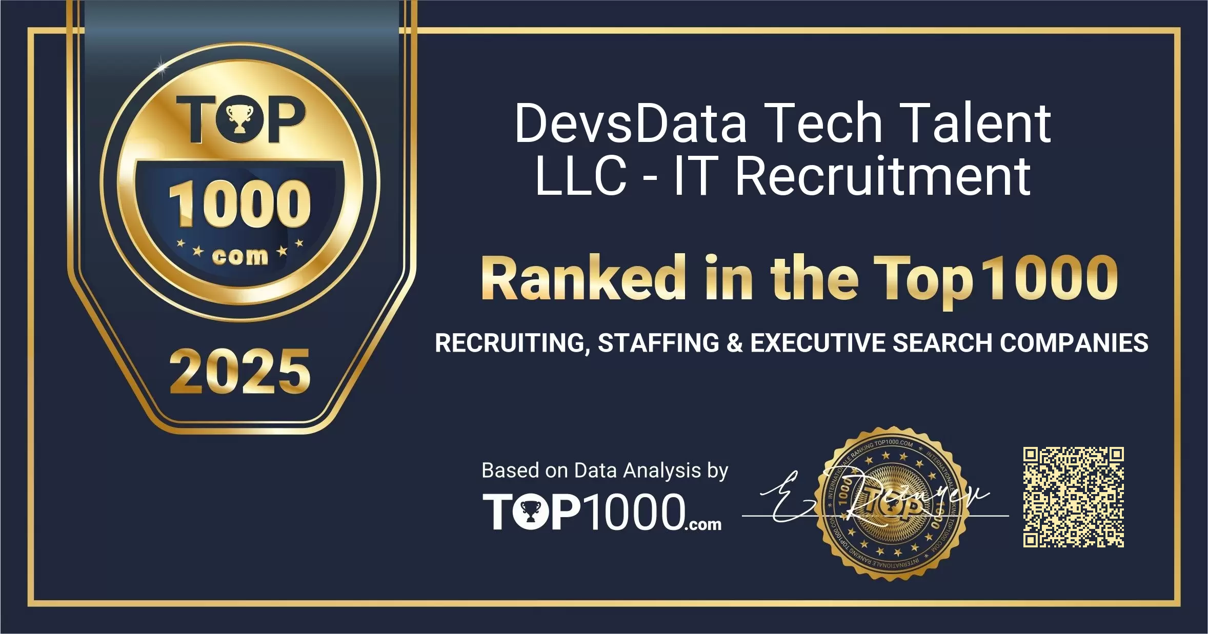 DevsData Tech Talent LLC - IT Recruitment ranked in the Top 1000 Recruiting, Staffing & Executive Search Companies