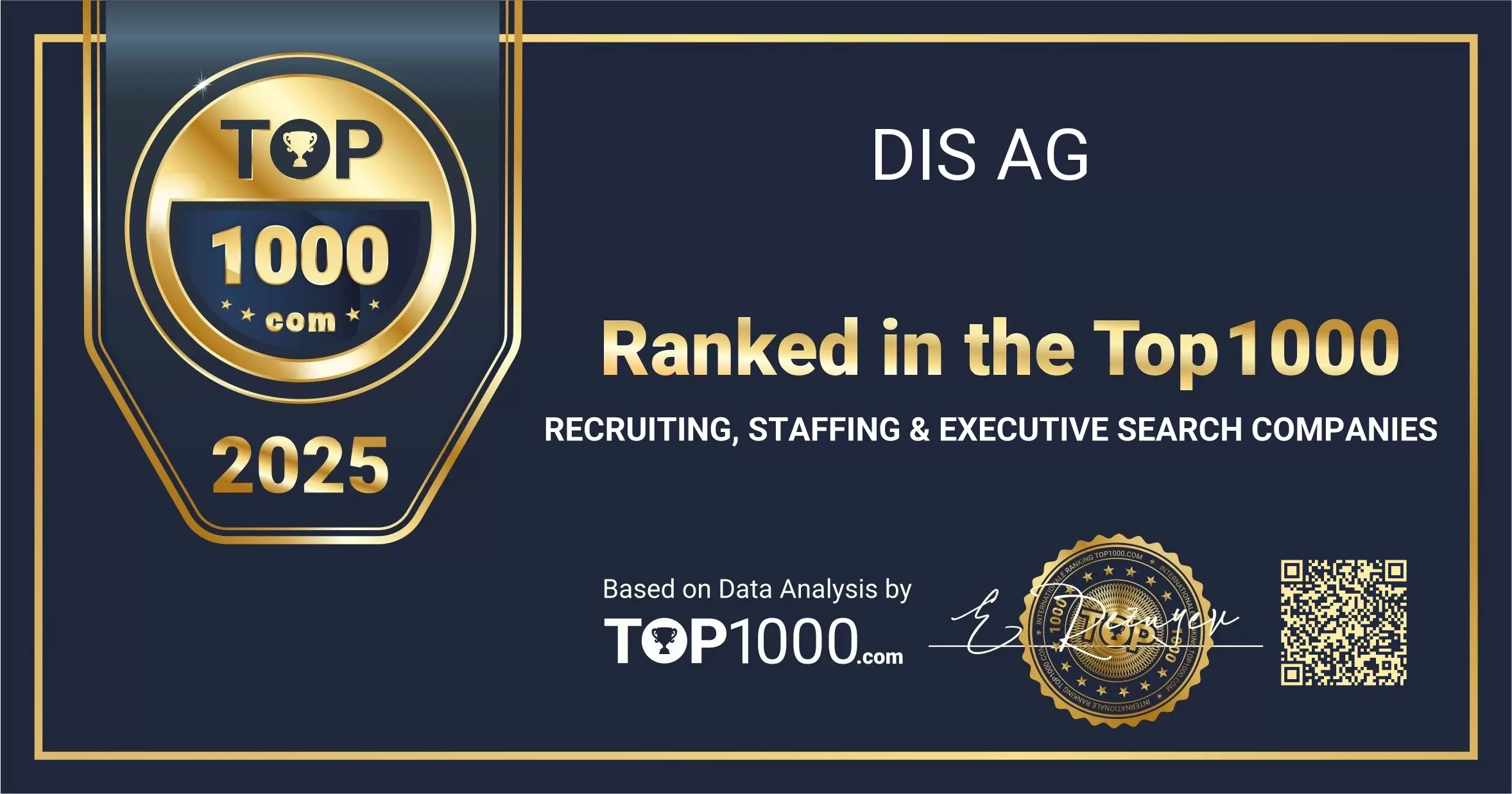 Earning a place among the Top 1000 Recruiting, Staffing & Executive Search Companies reflects strong visibility and trust from both employers and candidates. This recognition celebrates the sustained effort of DIS AG to support organisations with high-quality talent solutions and to guide professionals through key career moves.