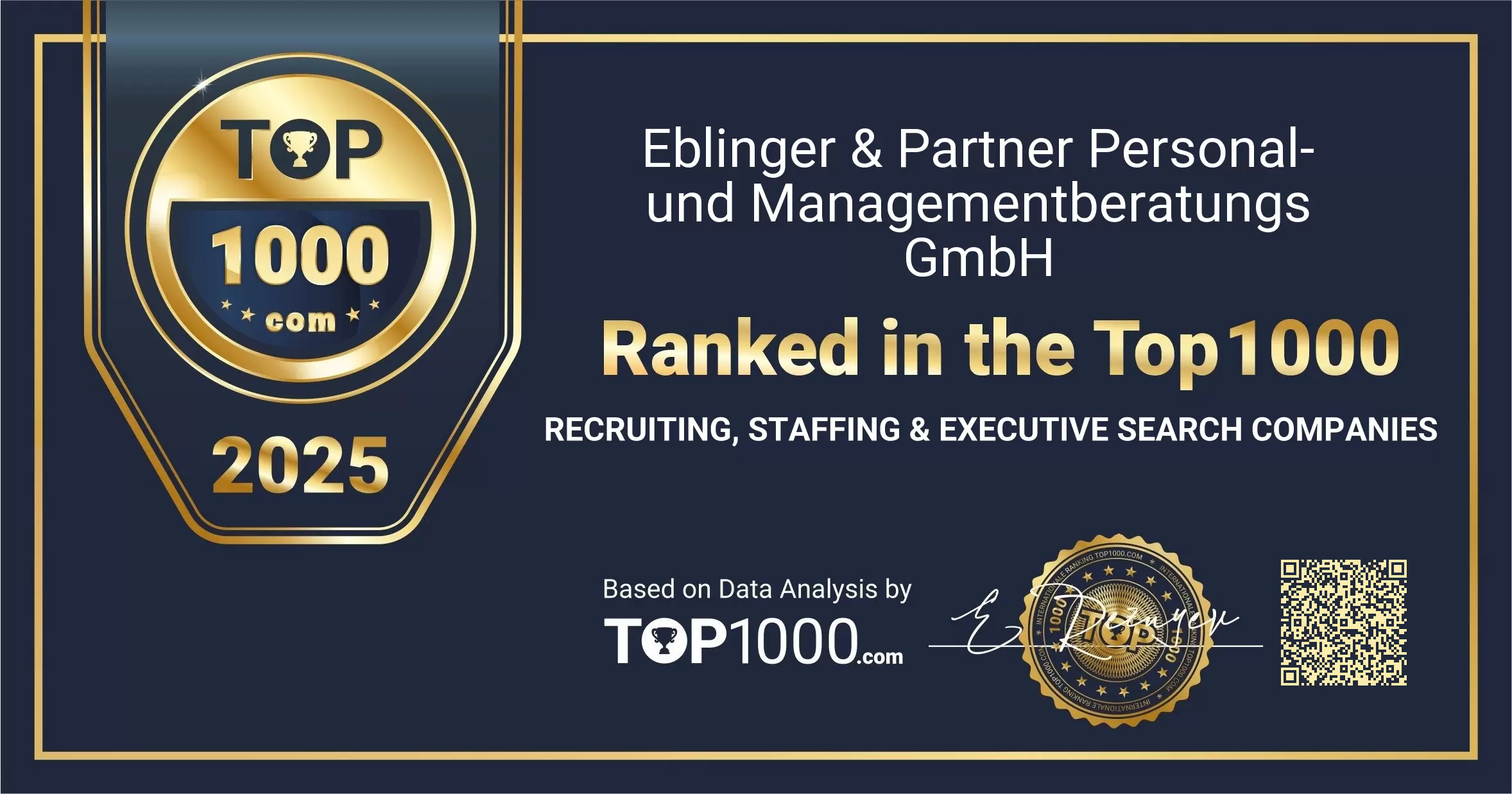 Eblinger & Partner Personal- und Managementberatungs GmbH ranked in the Top 1000 Recruiting, Staffing & Executive Search Companies
