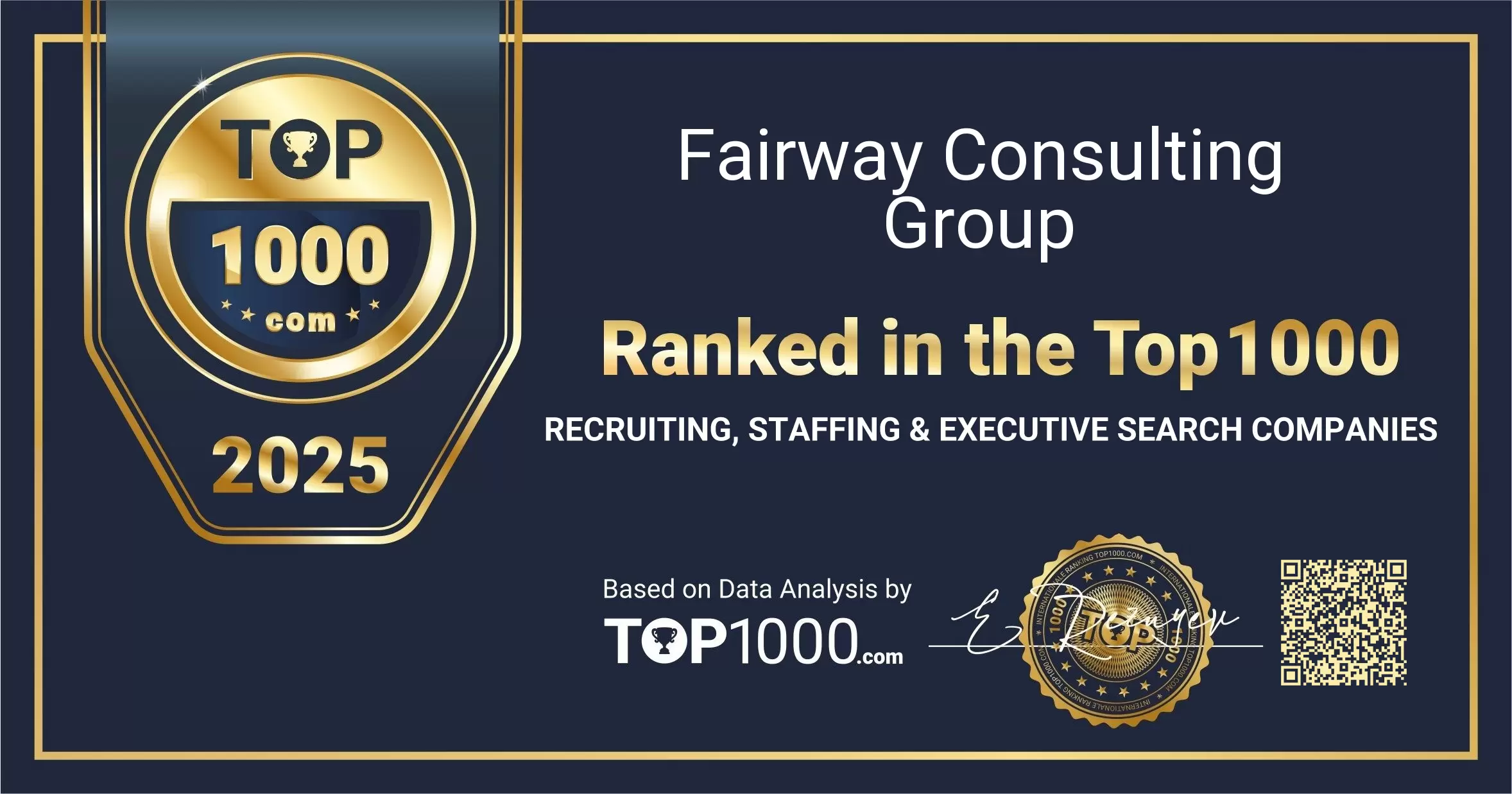 Fairway Consulting Group has been included in the Top 1000 Recruiting, Staffing & Executive Search Companies ranking. Use the options below to share this acknowledgement through your official channels.