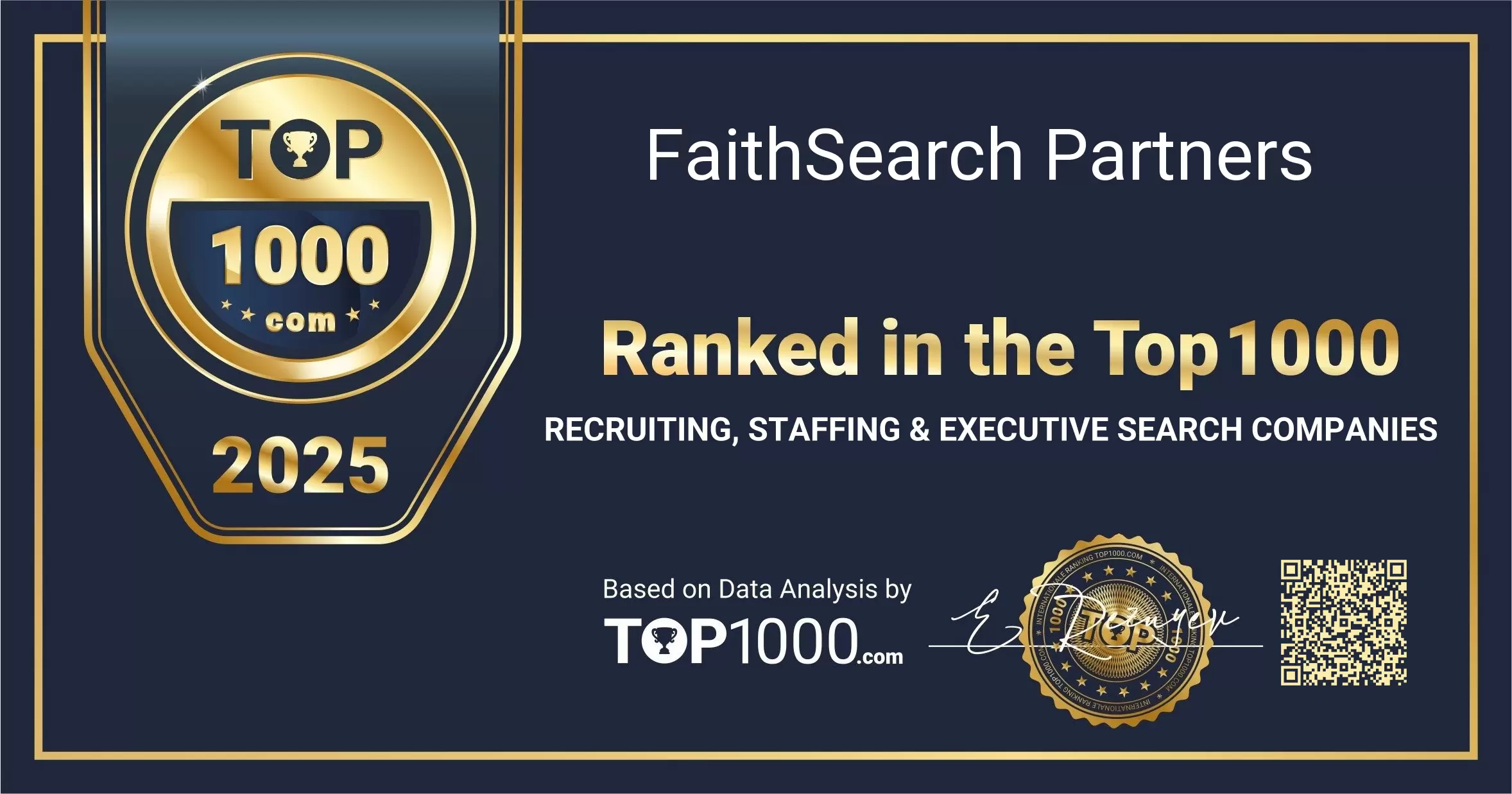FaithSearch Partners has been included in the Top 1000 Recruiting, Staffing & Executive Search Companies ranking. Use the options below to share this acknowledgement through your official channels.