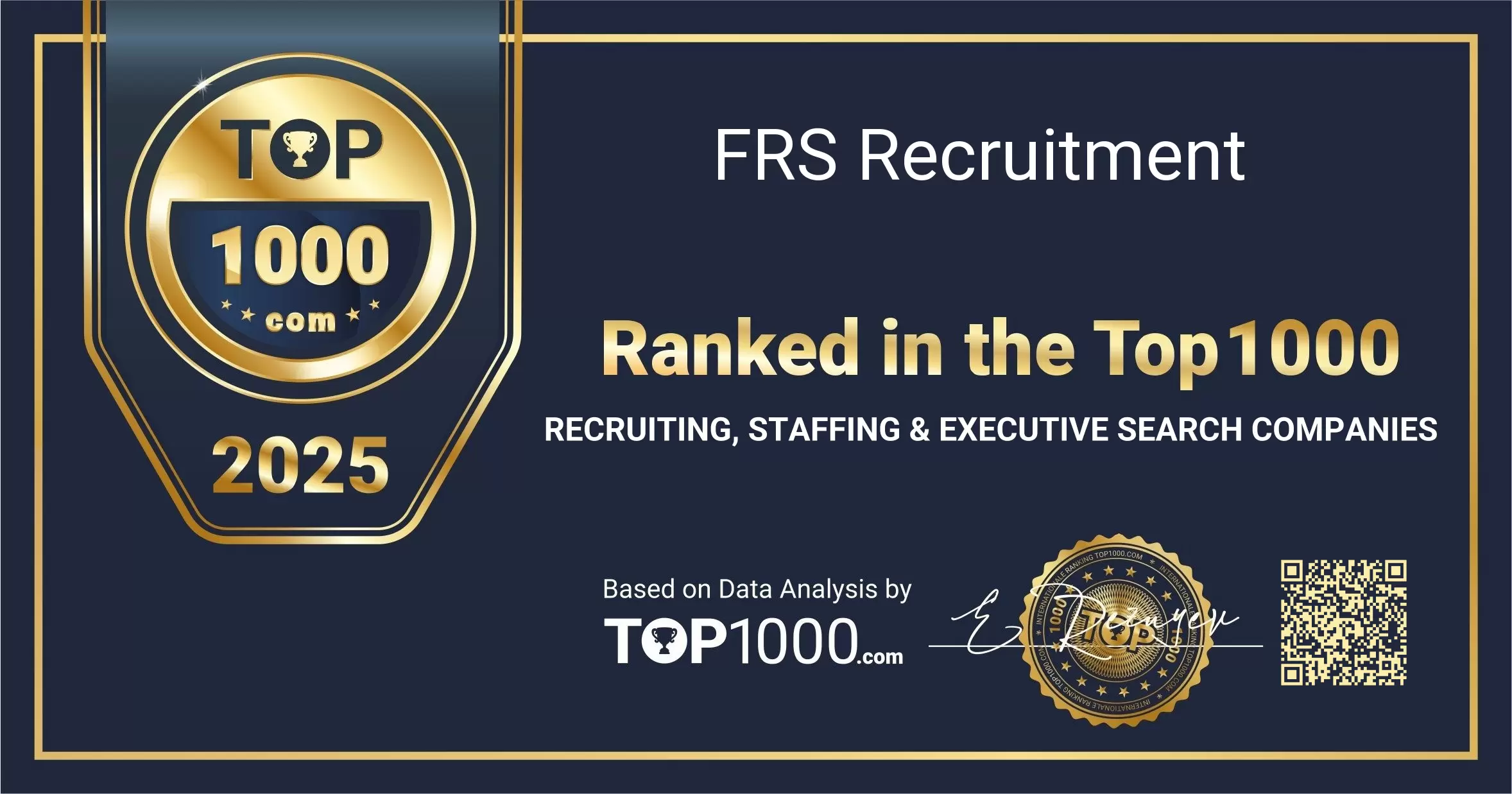 Earning a place among the Top 1000 Recruiting, Staffing & Executive Search Companies reflects strong visibility and trust from both employers and candidates. This recognition celebrates the sustained effort of FRS Recruitment to support organisations with high-quality talent solutions and to guide professionals through key career moves.