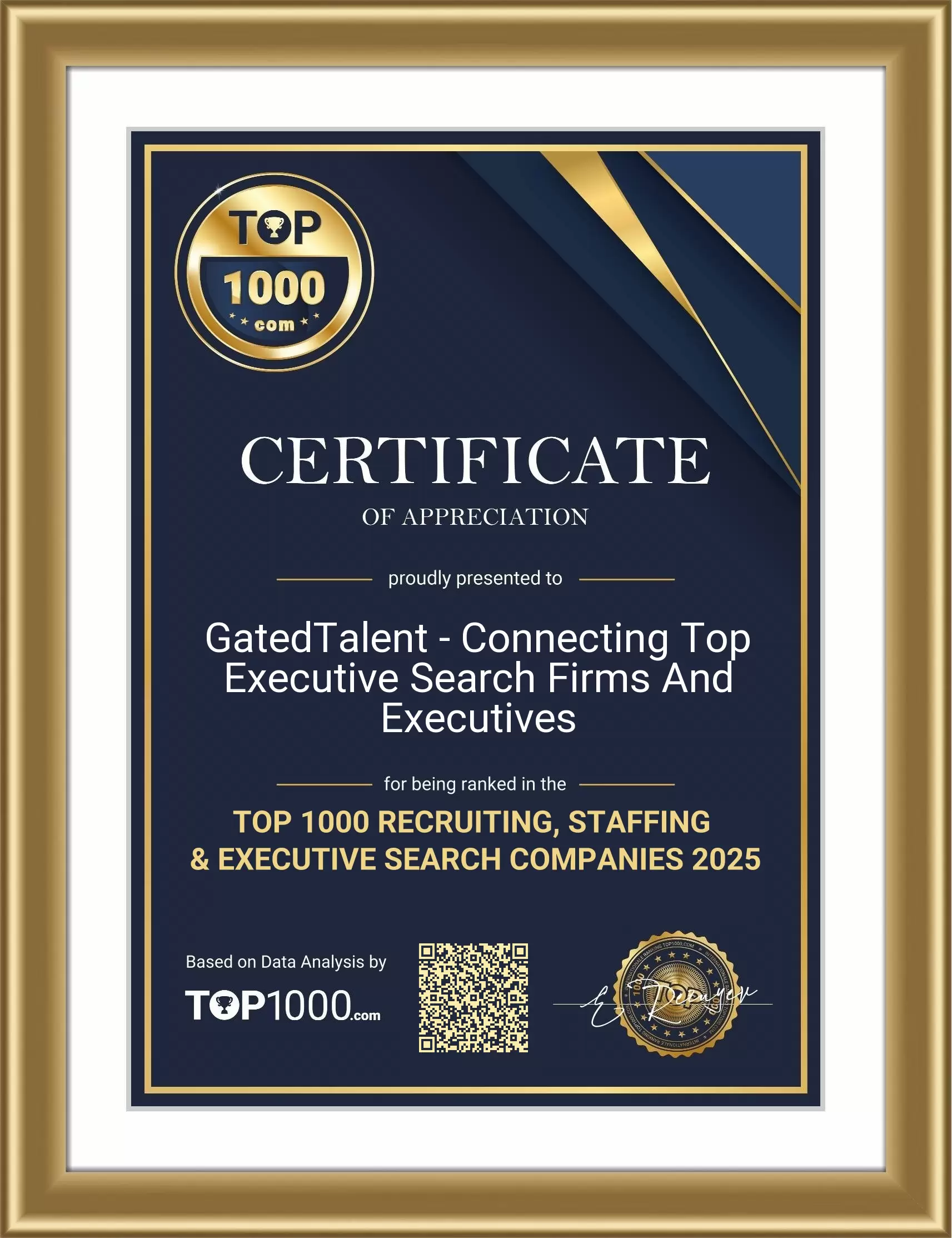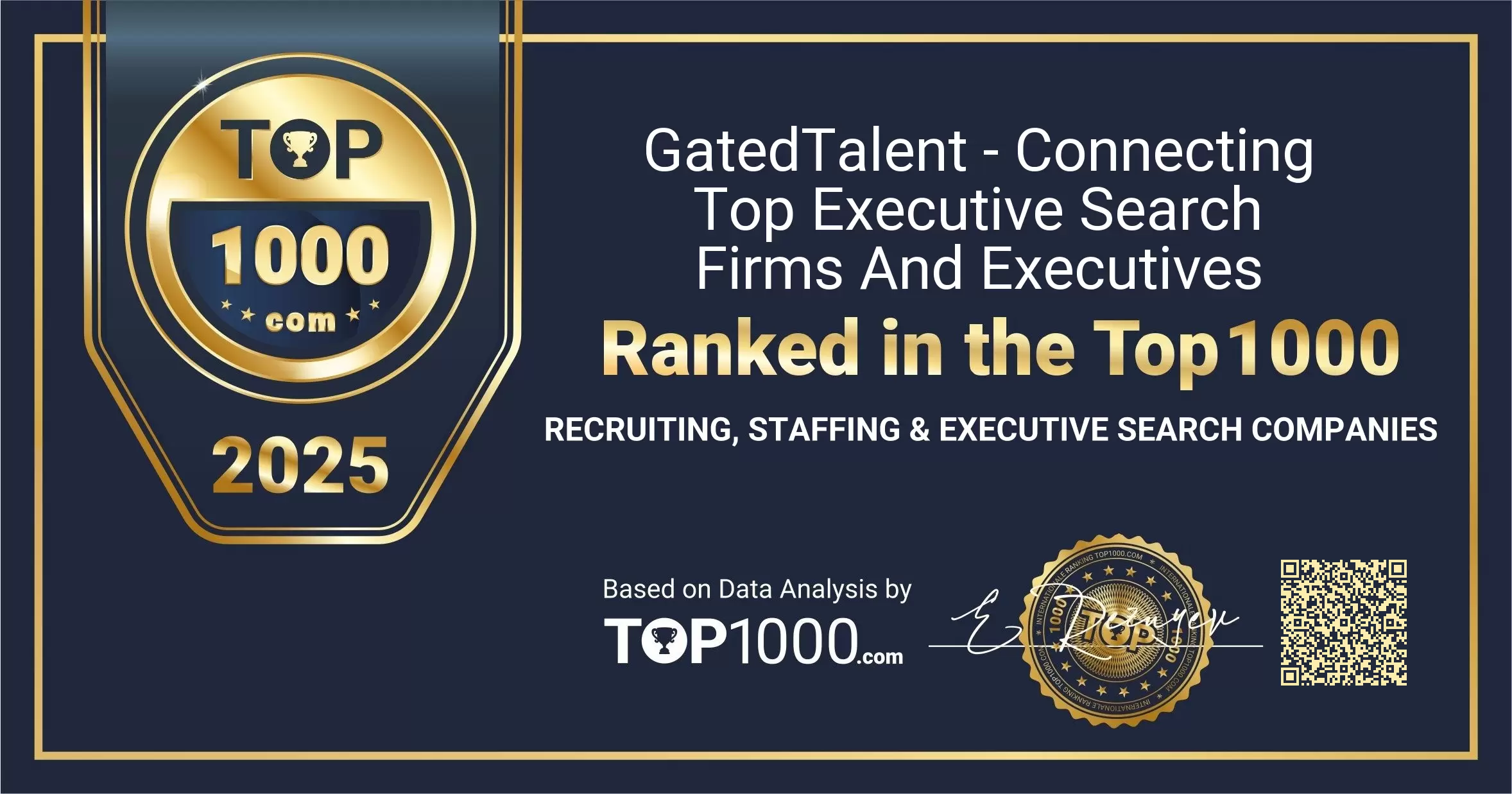 Earning a place among the Top 1000 Recruiting, Staffing & Executive Search Companies reflects strong visibility and trust from both employers and candidates. This recognition celebrates the sustained effort of GatedTalent - Connecting Top Executive Search Firms And Executives to support organisations with high-quality talent solutions and to guide professionals through key career moves.