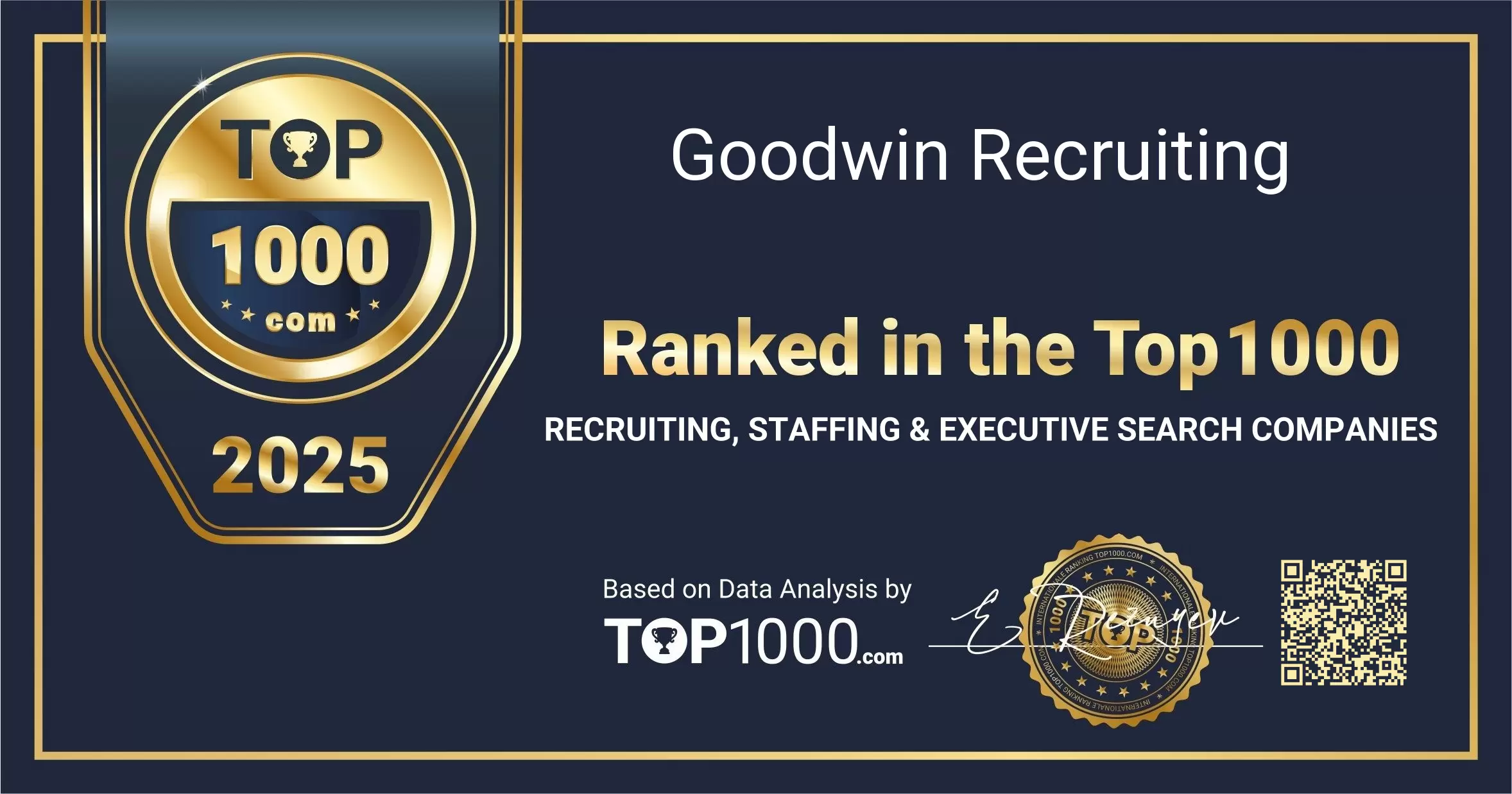 Earning a place among the Top 1000 Recruiting, Staffing & Executive Search Companies reflects strong visibility and trust from both employers and candidates. This recognition celebrates the sustained effort of Goodwin Recruiting to support organisations with high-quality talent solutions and to guide professionals through key career moves.