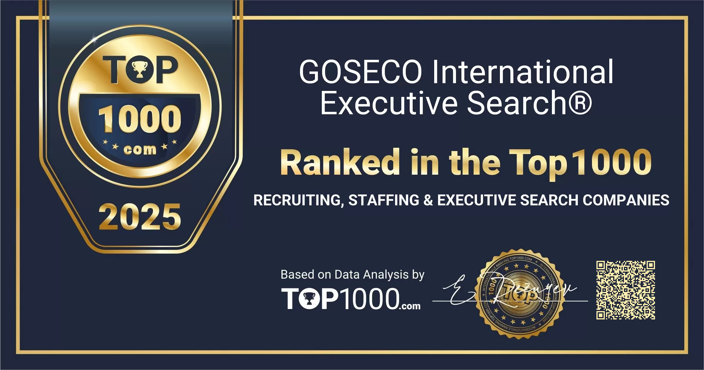 Earning a place among the Top 1000 Recruiting, Staffing & Executive Search Companies reflects strong visibility and trust from both employers and candidates. This recognition celebrates the sustained effort of GOSECO International Executive Search® to support organisations with high-quality talent solutions and to guide professionals through key career moves.