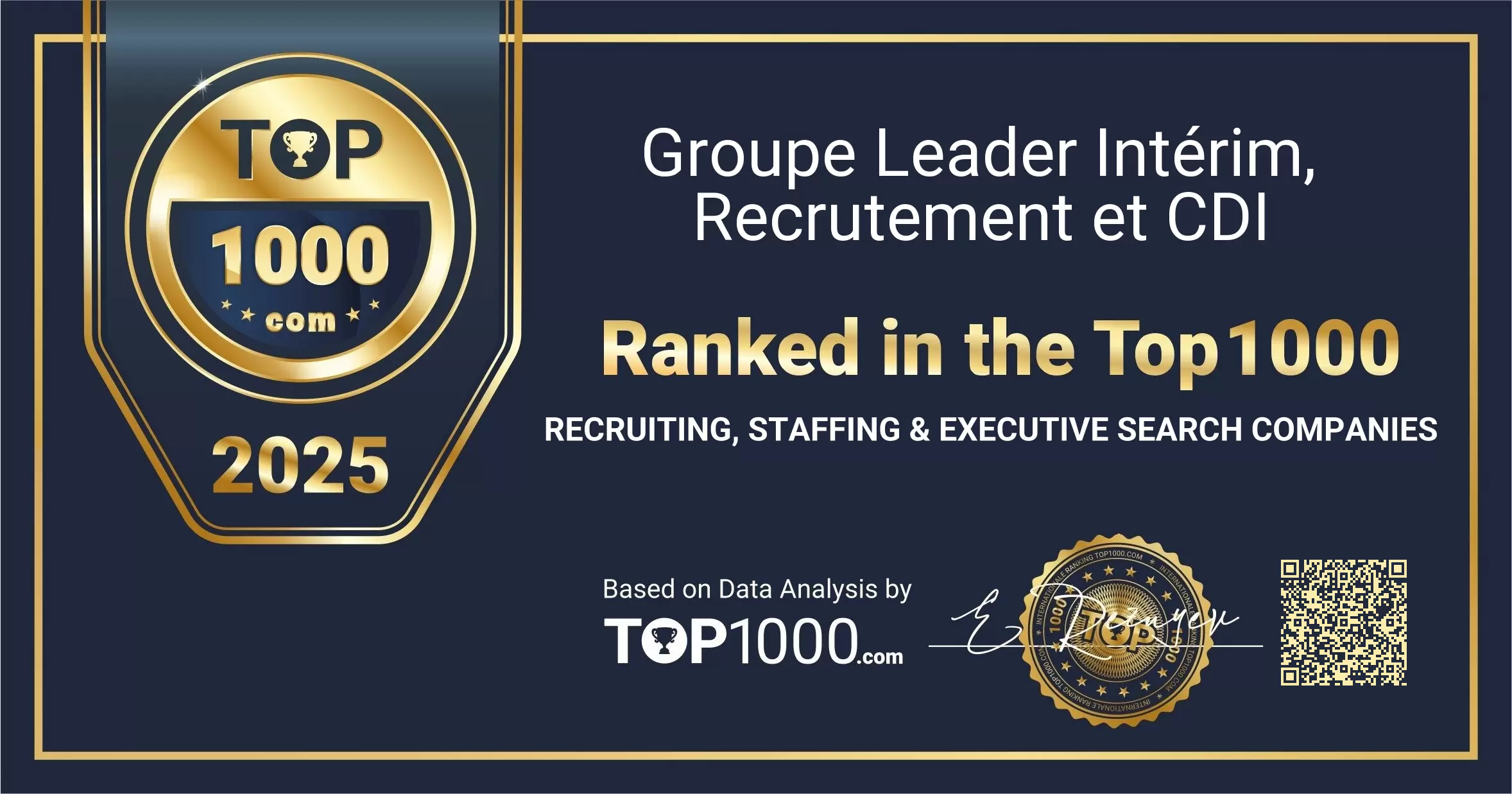 Earning a place among the Top 1000 Recruiting, Staffing & Executive Search Companies reflects strong visibility and trust from both employers and candidates. This recognition celebrates the sustained effort of Groupe Leader Intérim, Recrutement et CDI to support organisations with high-quality talent solutions and to guide professionals through key career moves.