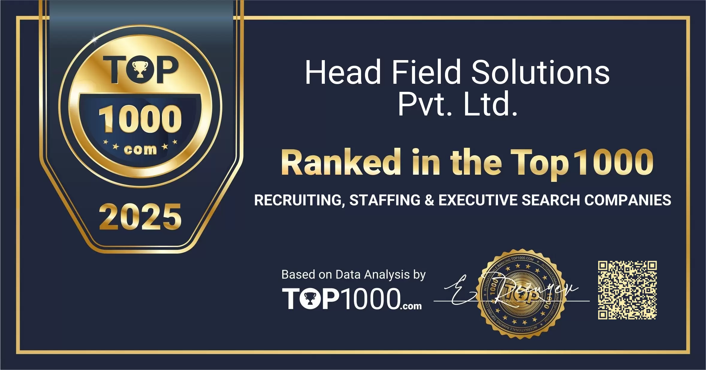 Earning a place among the Top 1000 Recruiting, Staffing & Executive Search Companies reflects strong visibility and trust from both employers and candidates. This recognition celebrates the sustained effort of Head Field Solutions Pvt. Ltd. to support organisations with high-quality talent solutions and to guide professionals through key career moves.