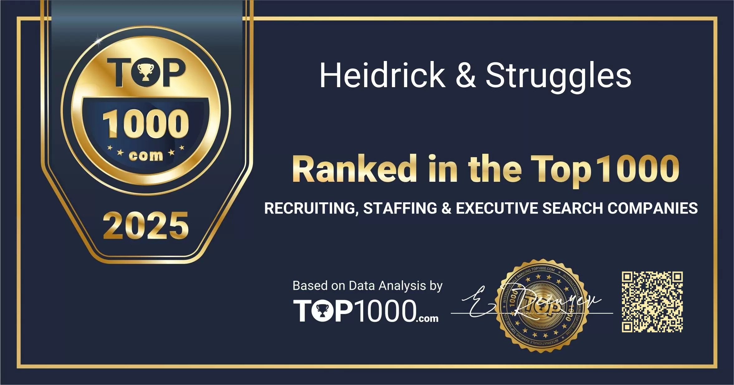 Heidrick & Struggles has been included in the Top 1000 Recruiting, Staffing & Executive Search Companies ranking. Use the options below to share this acknowledgement through your official channels.