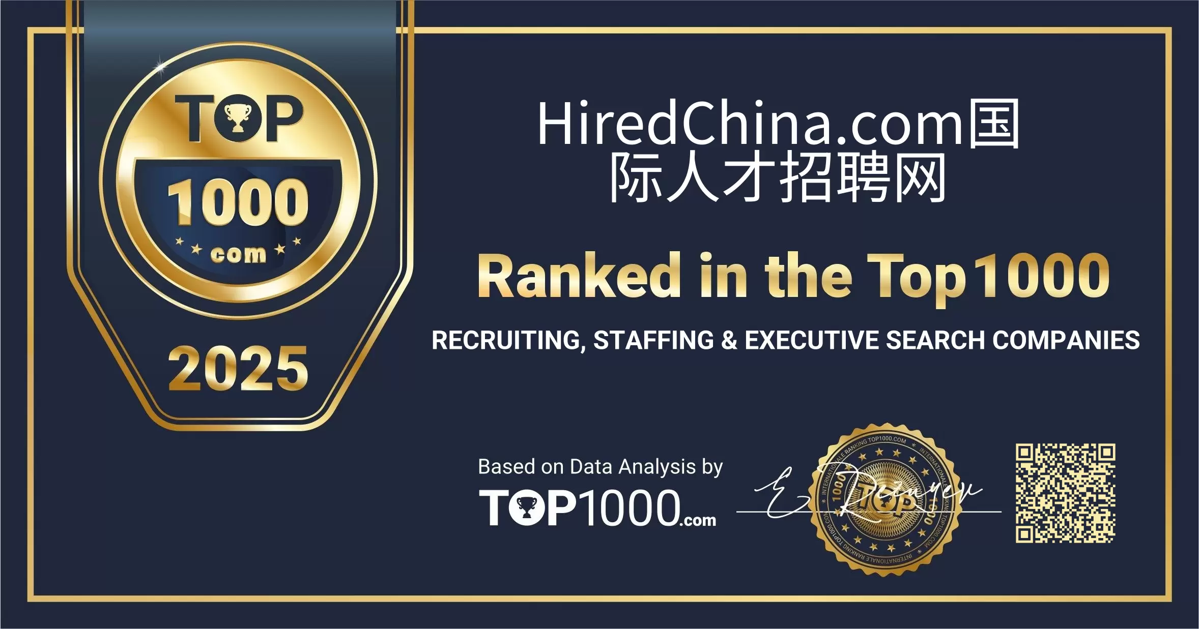 Earning a place among the Top 1000 Recruiting, Staffing & Executive Search Companies reflects strong visibility and trust from both employers and candidates. This recognition celebrates the sustained effort of HiredChina.com国际人才招聘网 to support organisations with high-quality talent solutions and to guide professionals through key career moves.