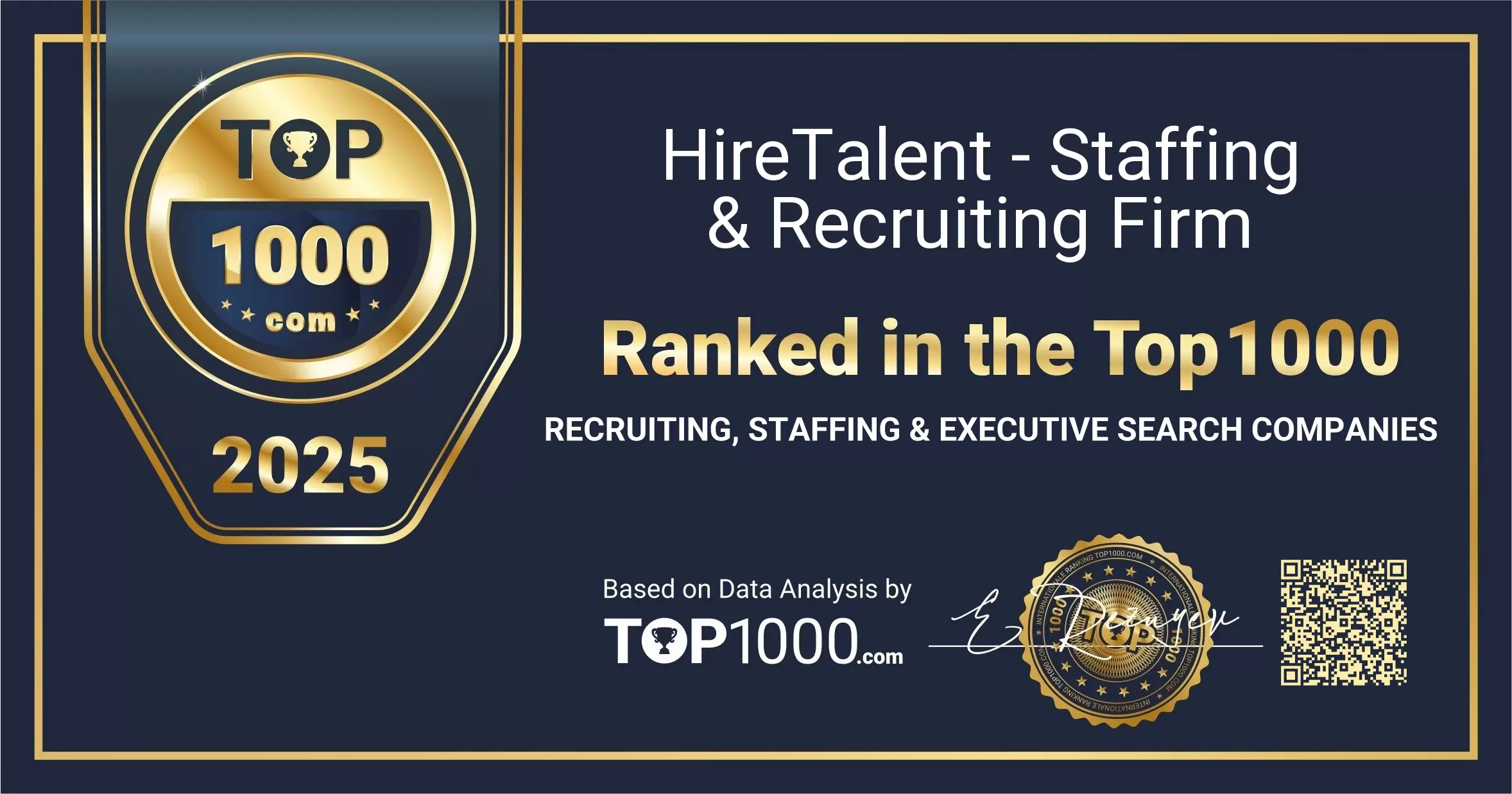 HireTalent - Staffing & Recruiting Firm has been included in the Top 1000 Recruiting, Staffing & Executive Search Companies ranking. Use the options below to share this acknowledgement through your official channels.