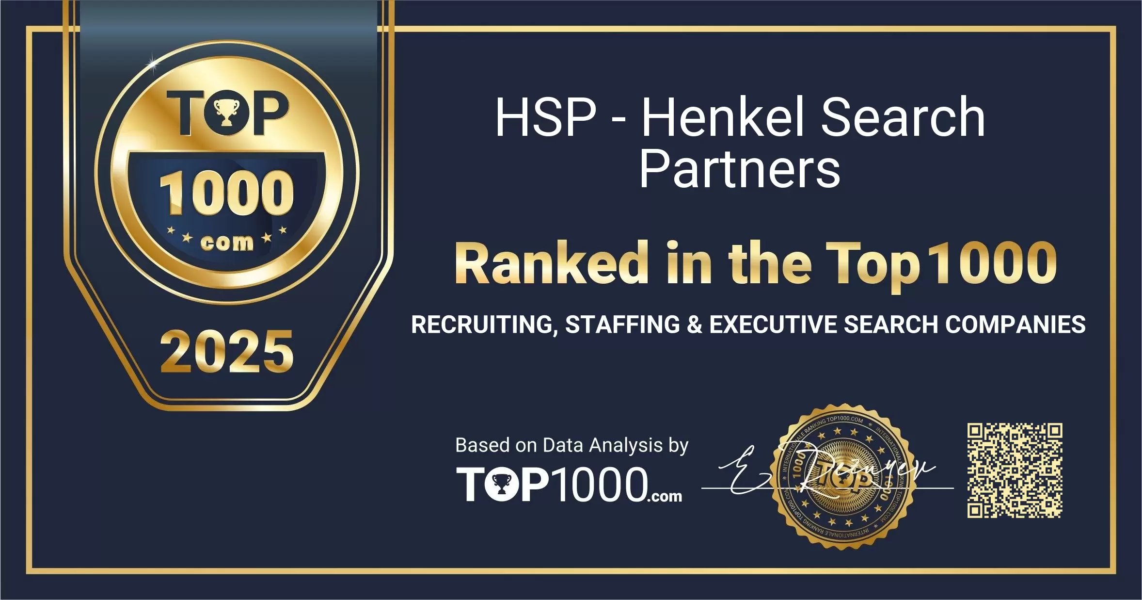 Earning a place among the Top 1000 Recruiting, Staffing & Executive Search Companies reflects strong visibility and trust from both employers and candidates. This recognition celebrates the sustained effort of HSP - Henkel Search Partners to support organisations with high-quality talent solutions and to guide professionals through key career moves.