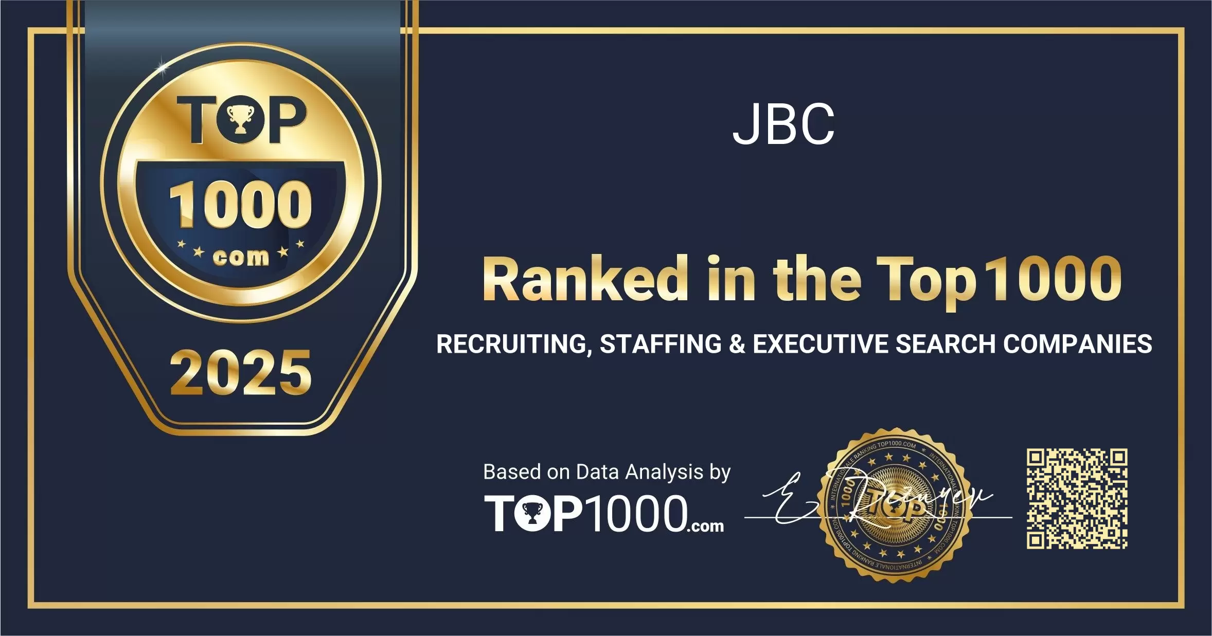 Earning a place among the Top 1000 Recruiting, Staffing & Executive Search Companies reflects strong visibility and trust from both employers and candidates. This recognition celebrates the sustained effort of JBC to support organisations with high-quality talent solutions and to guide professionals through key career moves.