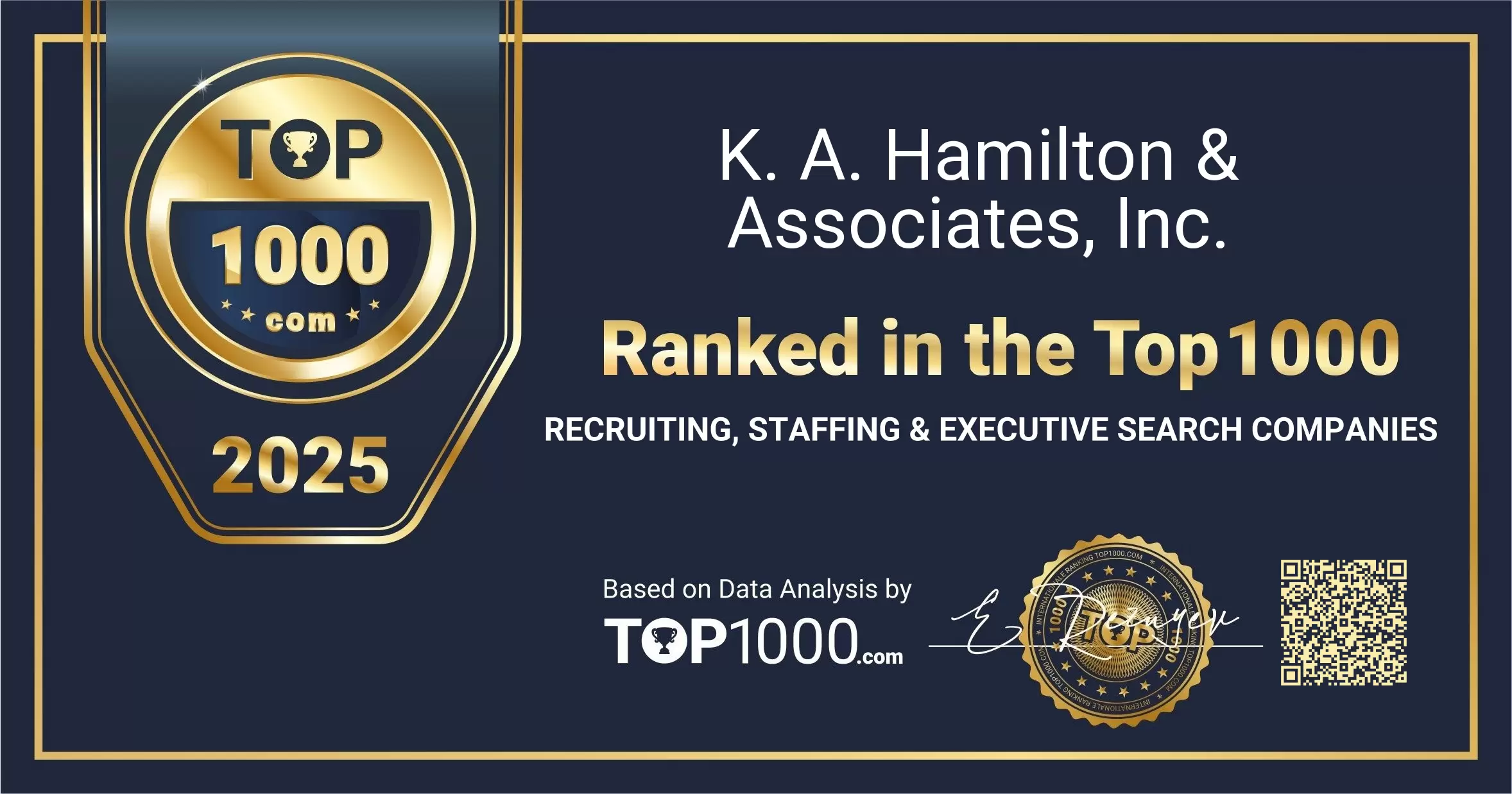 K. A. Hamilton & Associates, Inc. has been included in the Top 1000 Recruiting, Staffing & Executive Search Companies ranking. Use the options below to share this acknowledgement through your official channels.