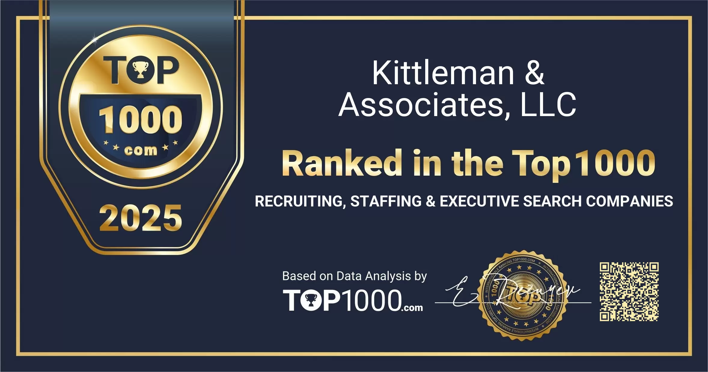 Kittleman & Associates, LLC has been included in the Top 1000 Recruiting, Staffing & Executive Search Companies ranking. Use the options below to share this acknowledgement through your official channels.