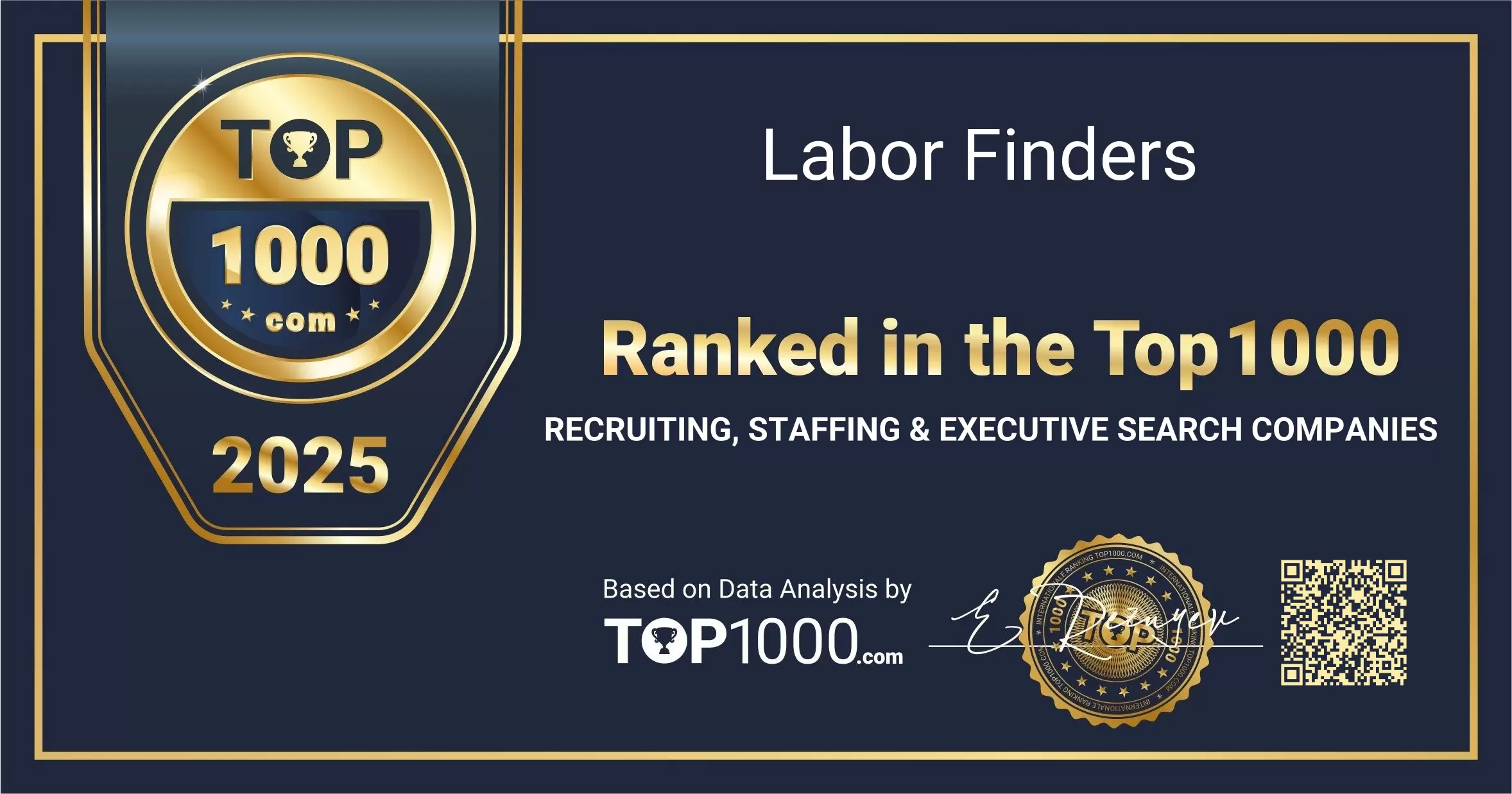 Labor Finders ranked in the Top 1000 Recruiting, Staffing & Executive Search Companies