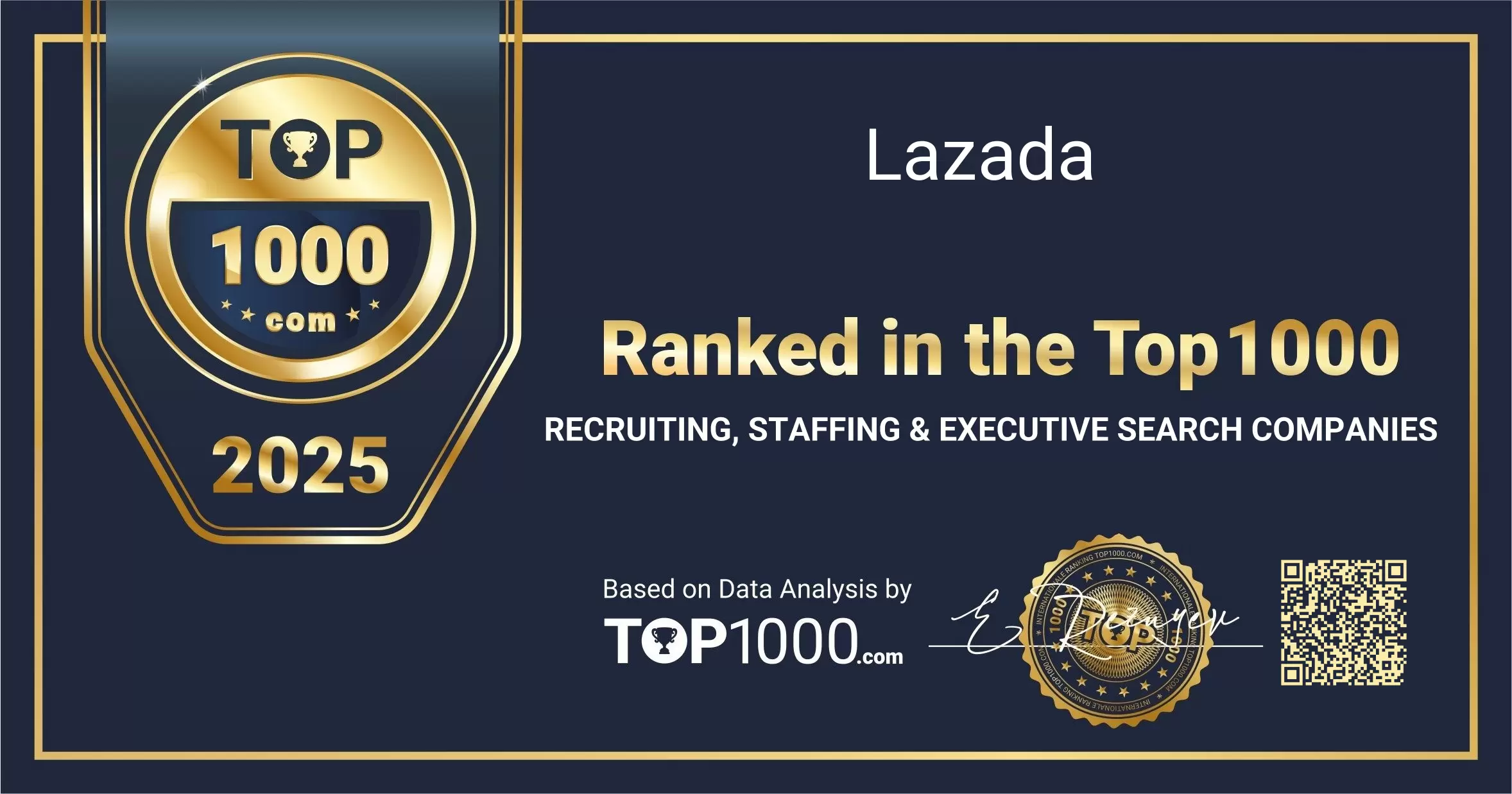 Earning a place among the Top 1000 Recruiting, Staffing & Executive Search Companies reflects strong visibility and trust from both employers and candidates. This recognition celebrates the sustained effort of Lazada to support organisations with high-quality talent solutions and to guide professionals through key career moves.
