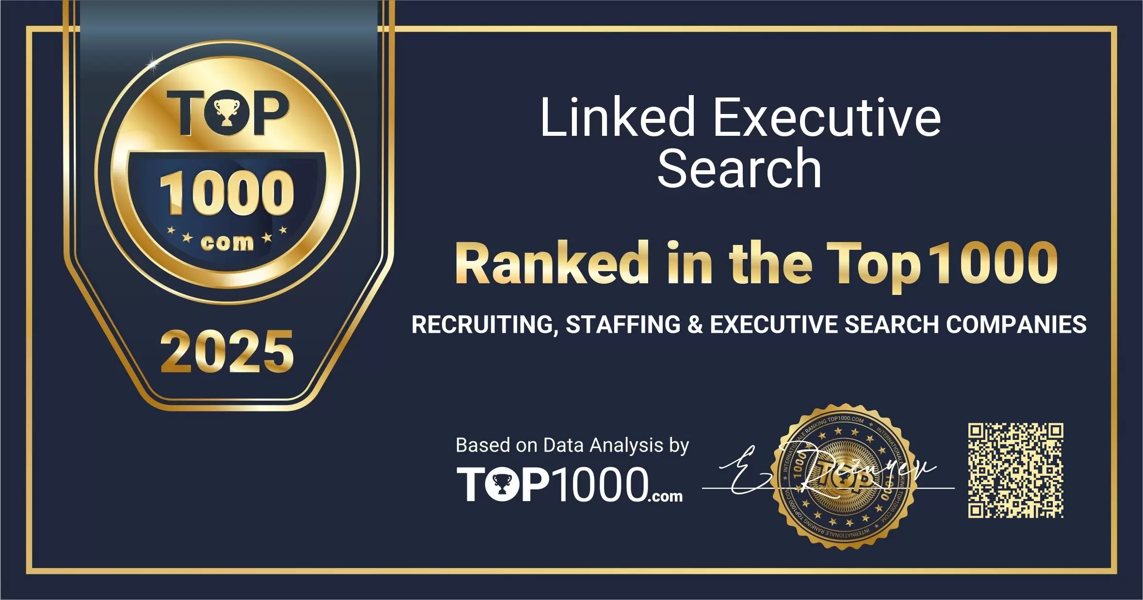 Linked Executive Search has been included in the Top 1000 Recruiting, Staffing & Executive Search Companies ranking. Use the options below to share this acknowledgement through your official channels.
