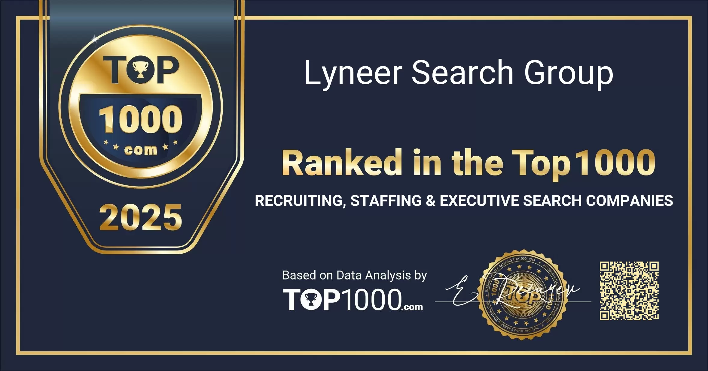 Lyneer Search Group has been included in the Top 1000 Recruiting, Staffing & Executive Search Companies ranking. Use the options below to share this acknowledgement through your official channels.