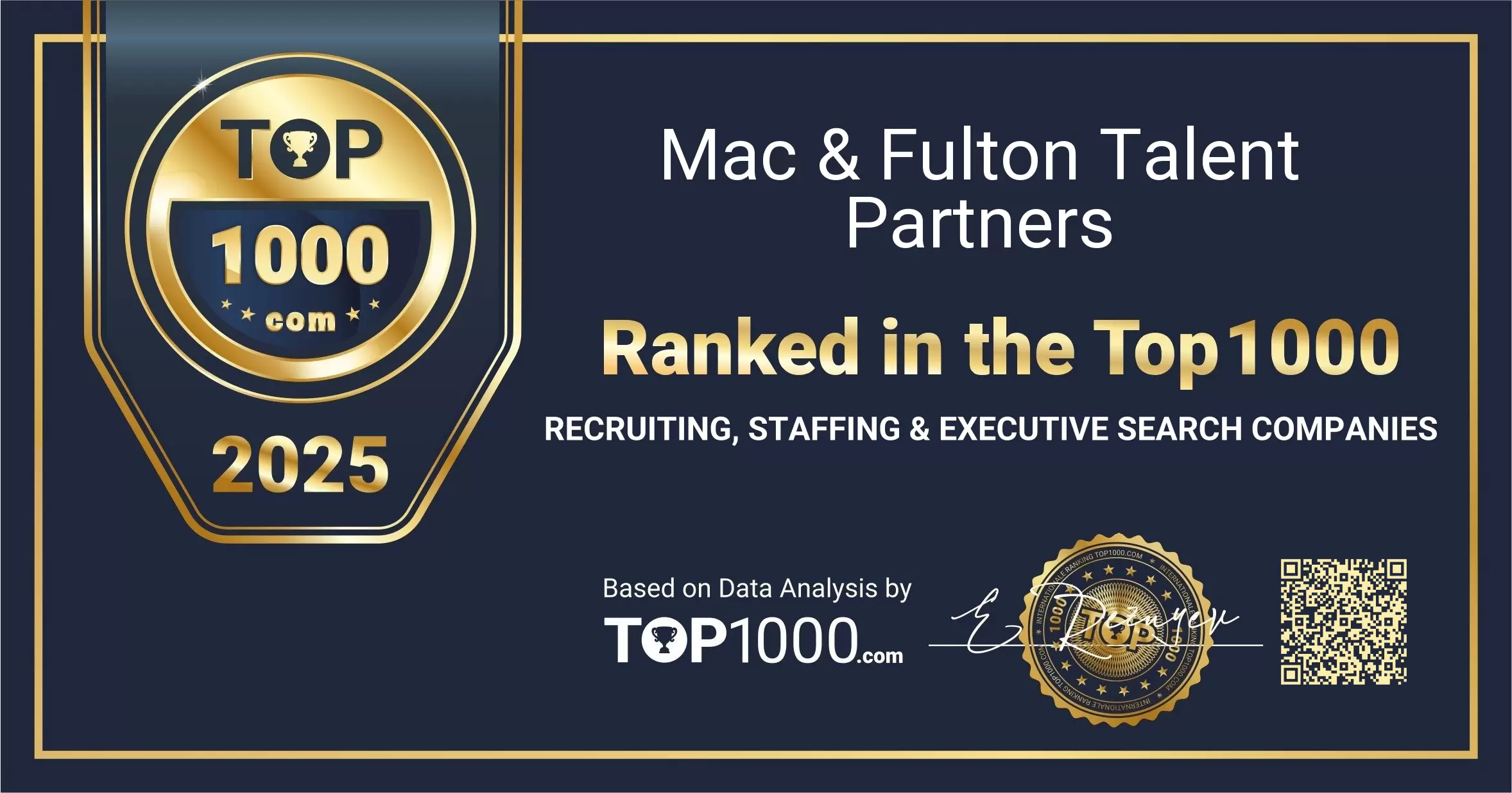 Earning a place among the Top 1000 Recruiting, Staffing & Executive Search Companies reflects strong visibility and trust from both employers and candidates. This recognition celebrates the sustained effort of Mac & Fulton Talent Partners to support organisations with high-quality talent solutions and to guide professionals through key career moves.