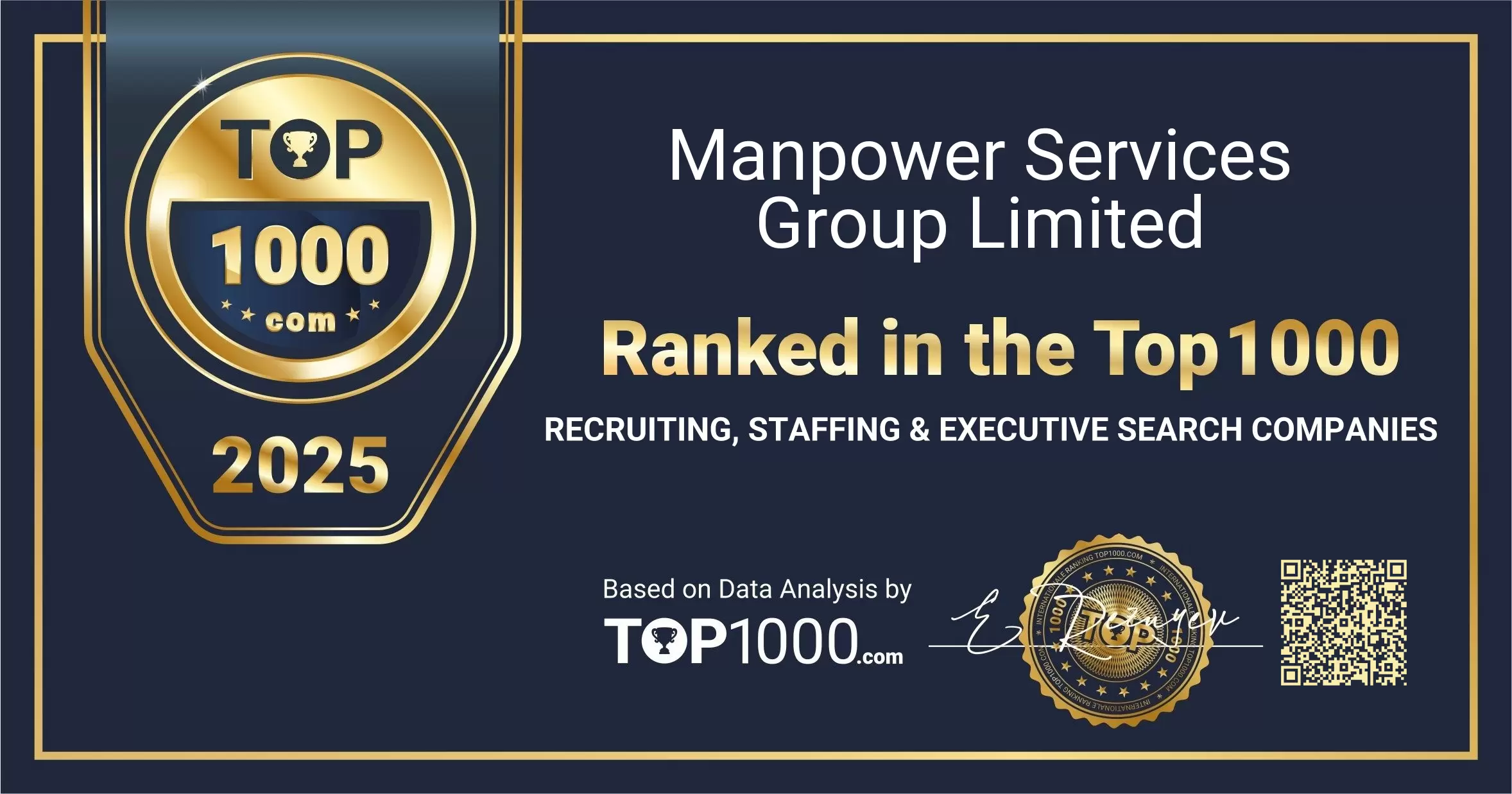 Manpower Services Group Limited ranked in the Top 1000 Recruiting, Staffing & Executive Search Companies