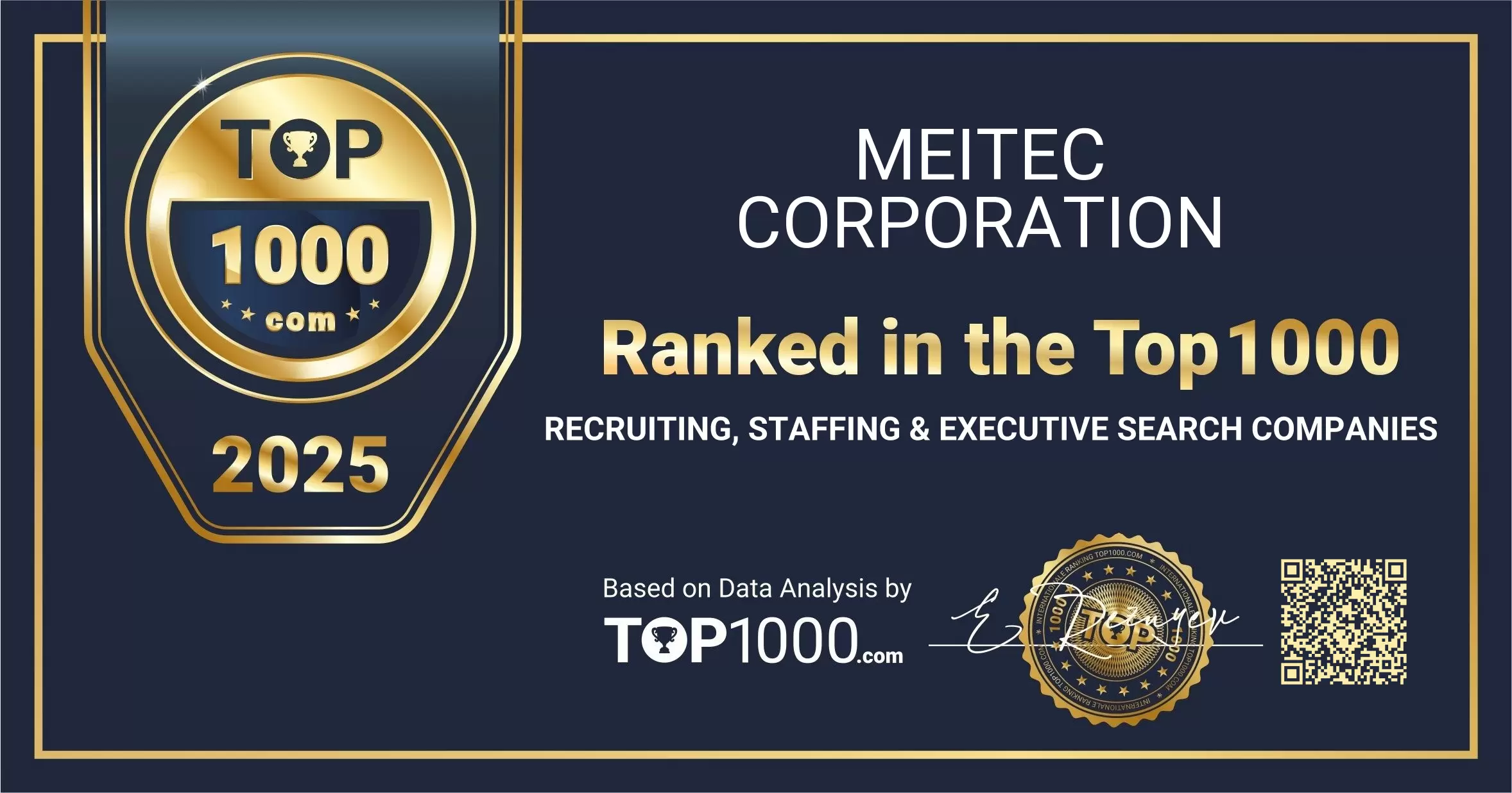 Earning a place among the Top 1000 Recruiting, Staffing & Executive Search Companies reflects strong visibility and trust from both employers and candidates. This recognition celebrates the sustained effort of MEITEC CORPORATION to support organisations with high-quality talent solutions and to guide professionals through key career moves.