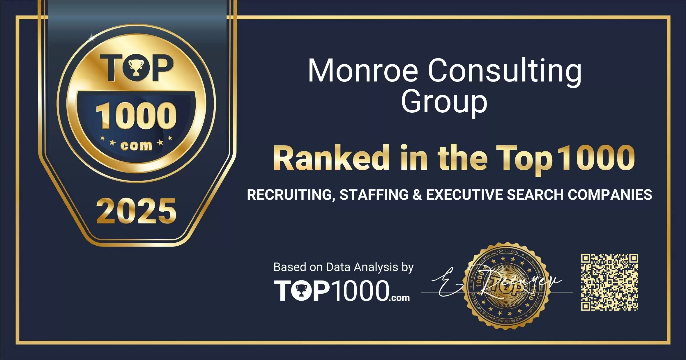 Monroe Consulting Group has been included in the Top 1000 Recruiting, Staffing & Executive Search Companies ranking. Use the options below to share this acknowledgement through your official channels.