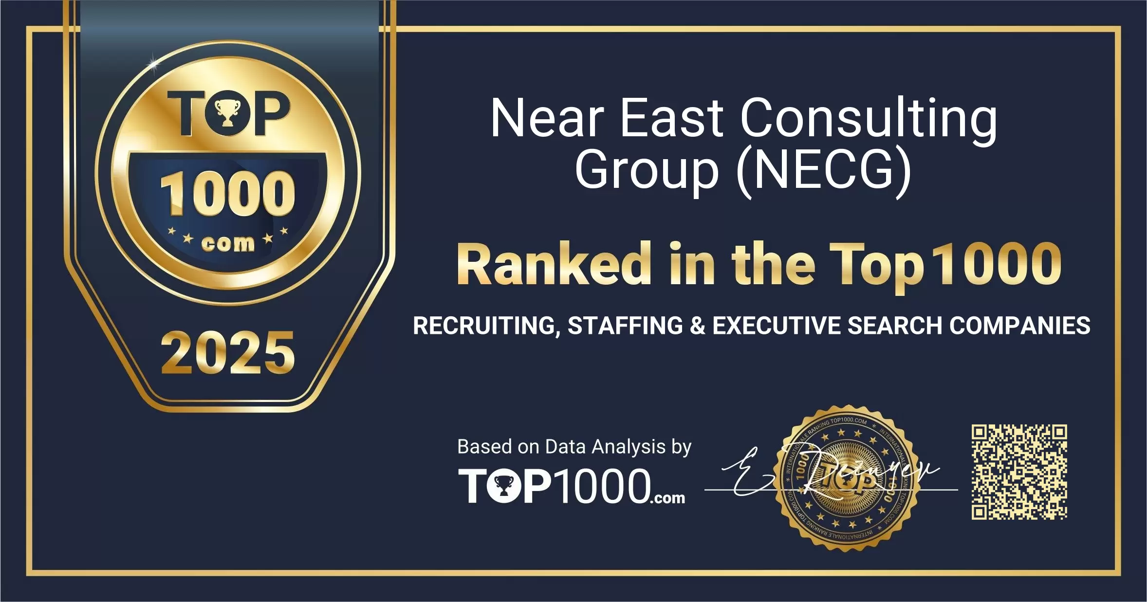 Earning a place among the Top 1000 Recruiting, Staffing & Executive Search Companies reflects strong visibility and trust from both employers and candidates. This recognition celebrates the sustained effort of Near East Consulting Group (NECG) to support organisations with high-quality talent solutions and to guide professionals through key career moves.