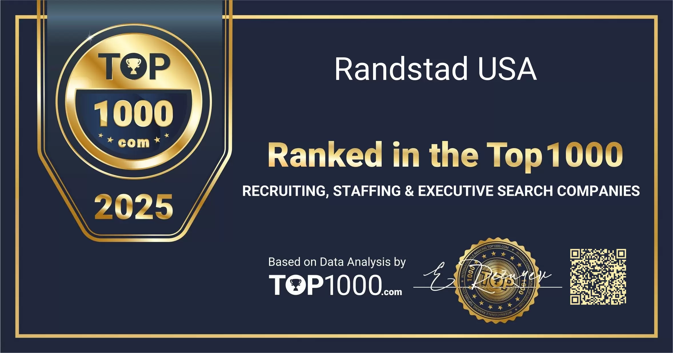 Earning a place among the Top 1000 Recruiting, Staffing & Executive Search Companies reflects strong visibility and trust from both employers and candidates. This recognition celebrates the sustained effort of Randstad USA to support organisations with high-quality talent solutions and to guide professionals through key career moves.