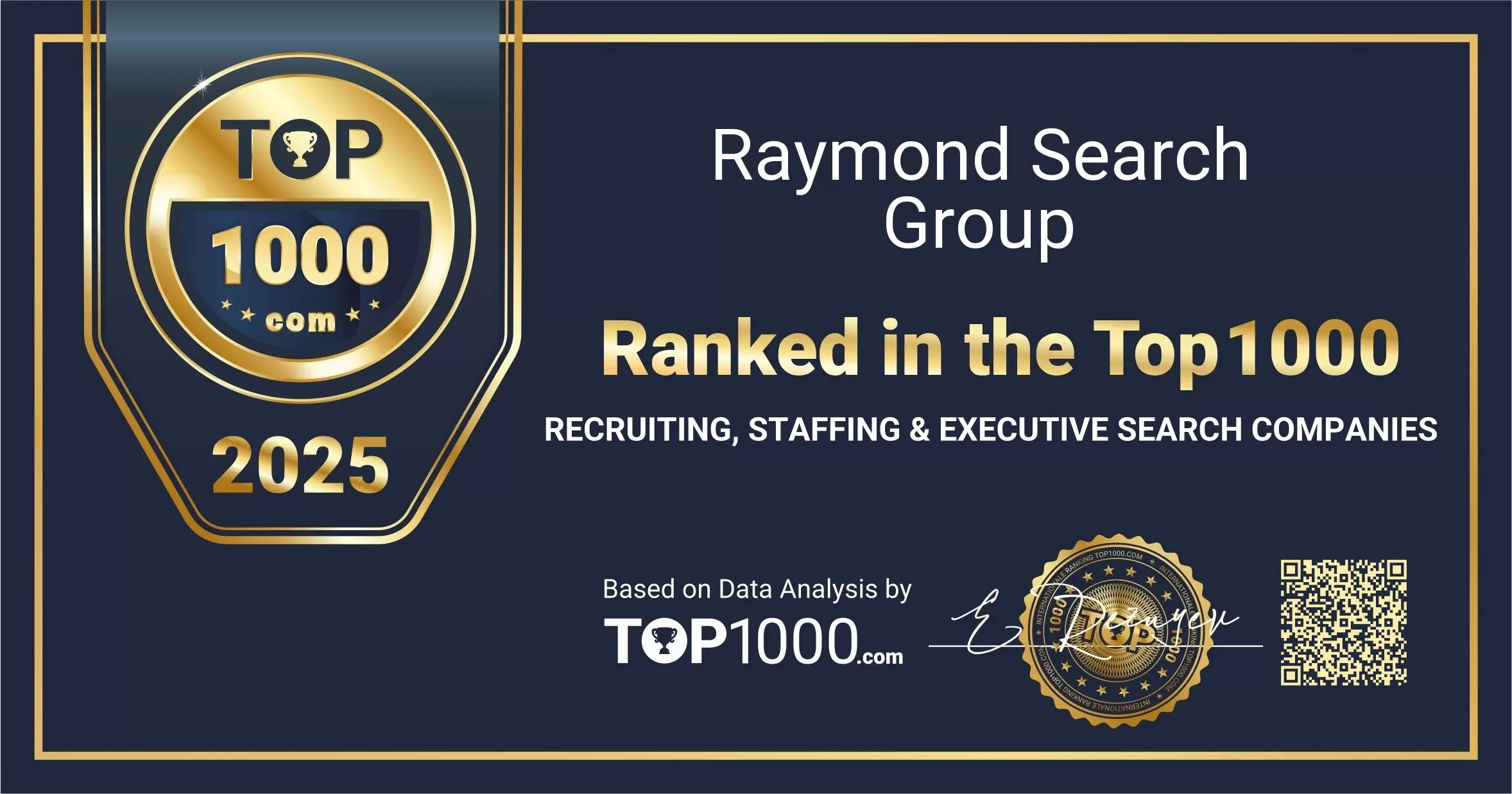 Earning a place among the Top 1000 Recruiting, Staffing & Executive Search Companies reflects strong visibility and trust from both employers and candidates. This recognition celebrates the sustained effort of Raymond Search Group to support organisations with high-quality talent solutions and to guide professionals through key career moves.