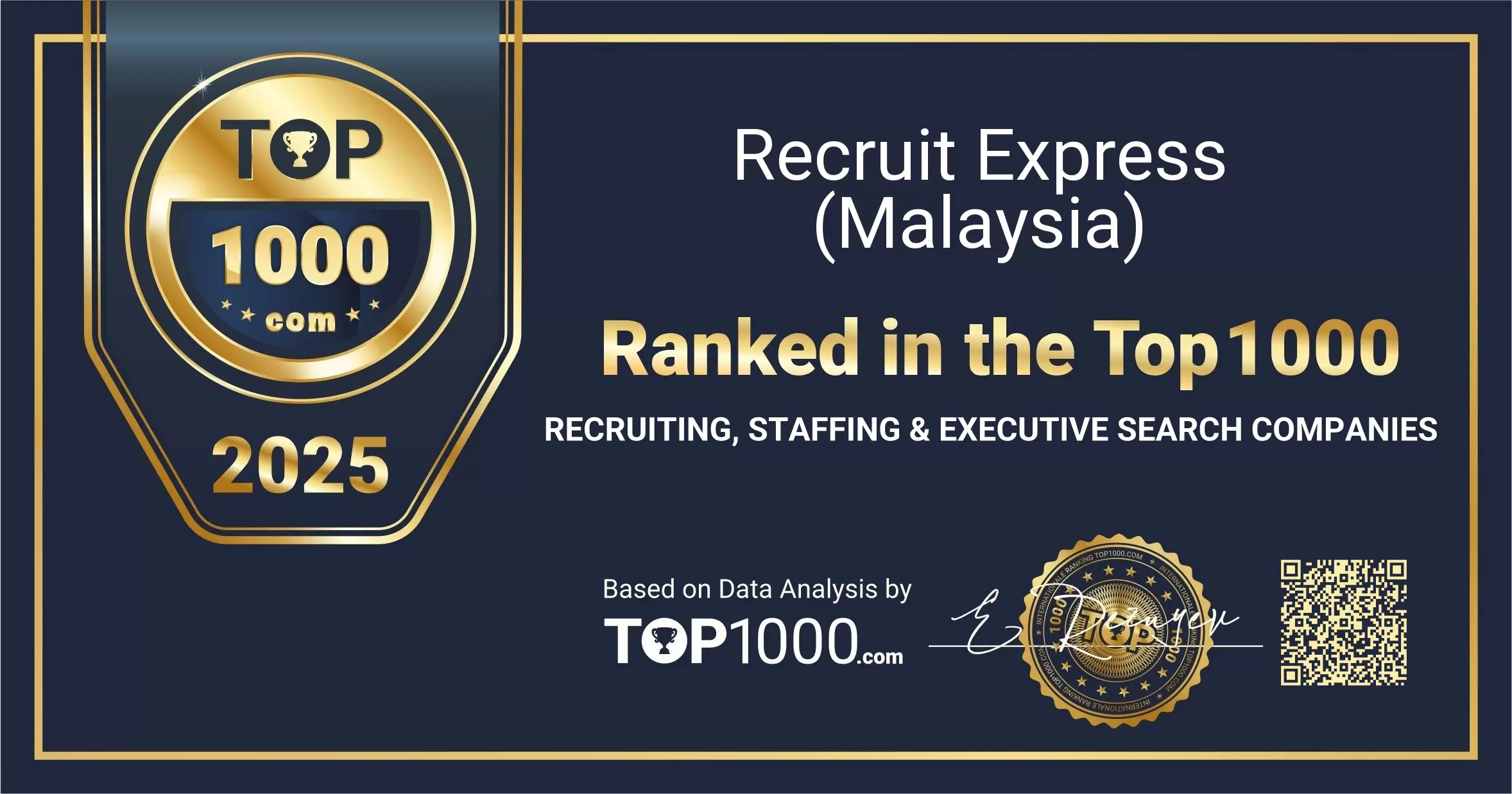 Earning a place among the Top 1000 Recruiting, Staffing & Executive Search Companies reflects strong visibility and trust from both employers and candidates. This recognition celebrates the sustained effort of Recruit Express (Malaysia) to support organisations with high-quality talent solutions and to guide professionals through key career moves.