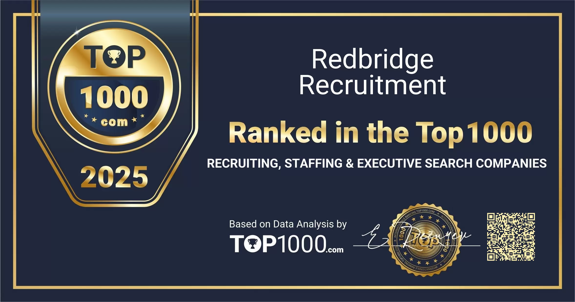 Earning a place among the Top 1000 Recruiting, Staffing & Executive Search Companies reflects strong visibility and trust from both employers and candidates. This recognition celebrates the sustained effort of Redbridge Recruitment to support organisations with high-quality talent solutions and to guide professionals through key career moves.