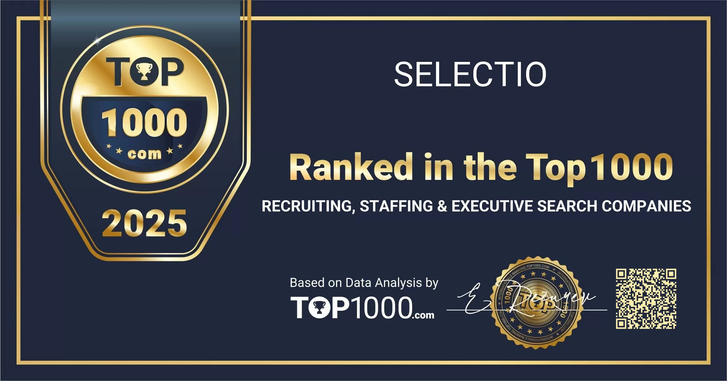 Earning a place among the Top 1000 Recruiting, Staffing & Executive Search Companies reflects strong visibility and trust from both employers and candidates. This recognition celebrates the sustained effort of SELECTIO to support organisations with high-quality talent solutions and to guide professionals through key career moves.
