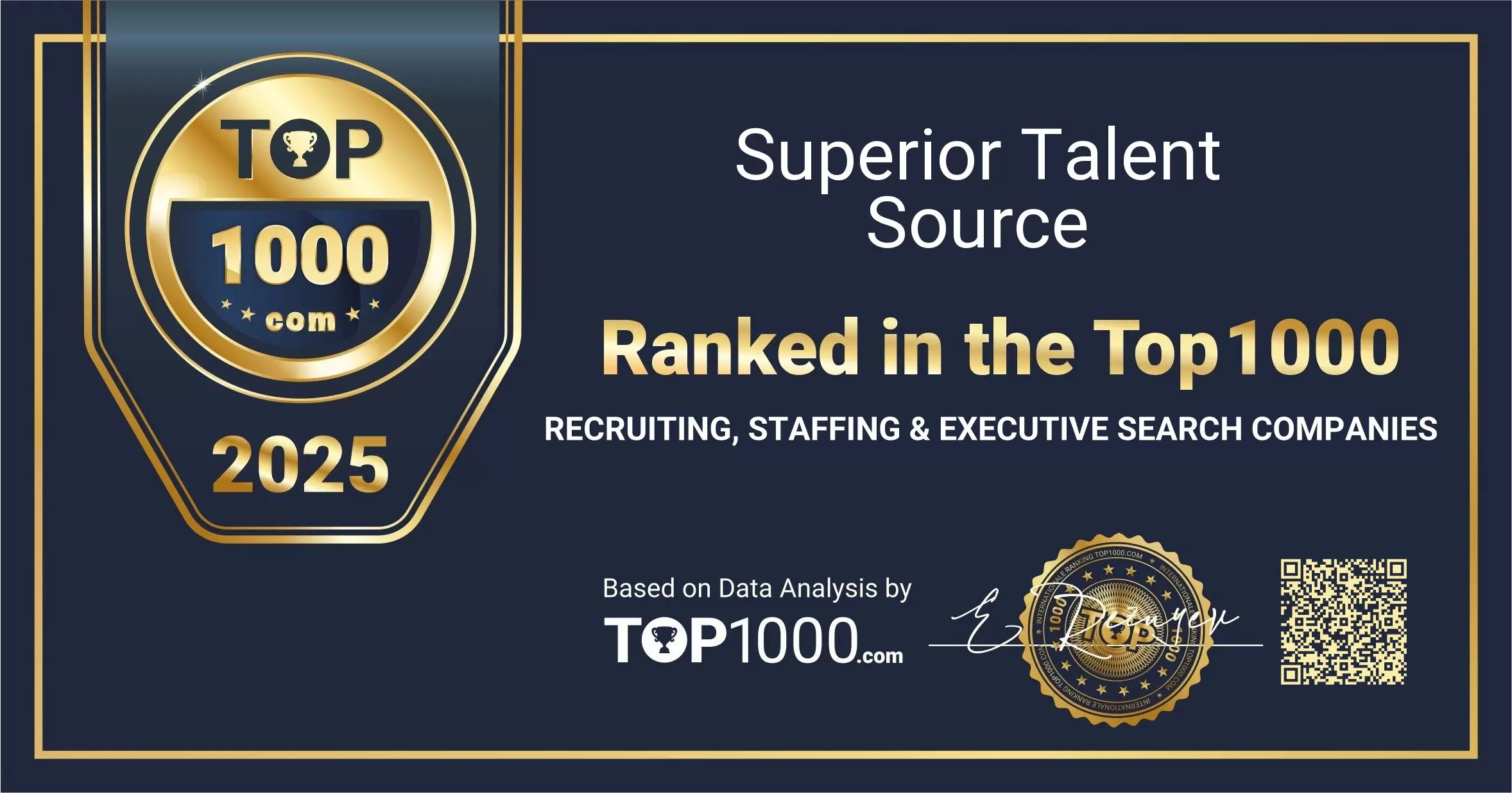 Earning a place among the Top 1000 Recruiting, Staffing & Executive Search Companies reflects strong visibility and trust from both employers and candidates. This recognition celebrates the sustained effort of Superior Talent Source to support organisations with high-quality talent solutions and to guide professionals through key career moves.