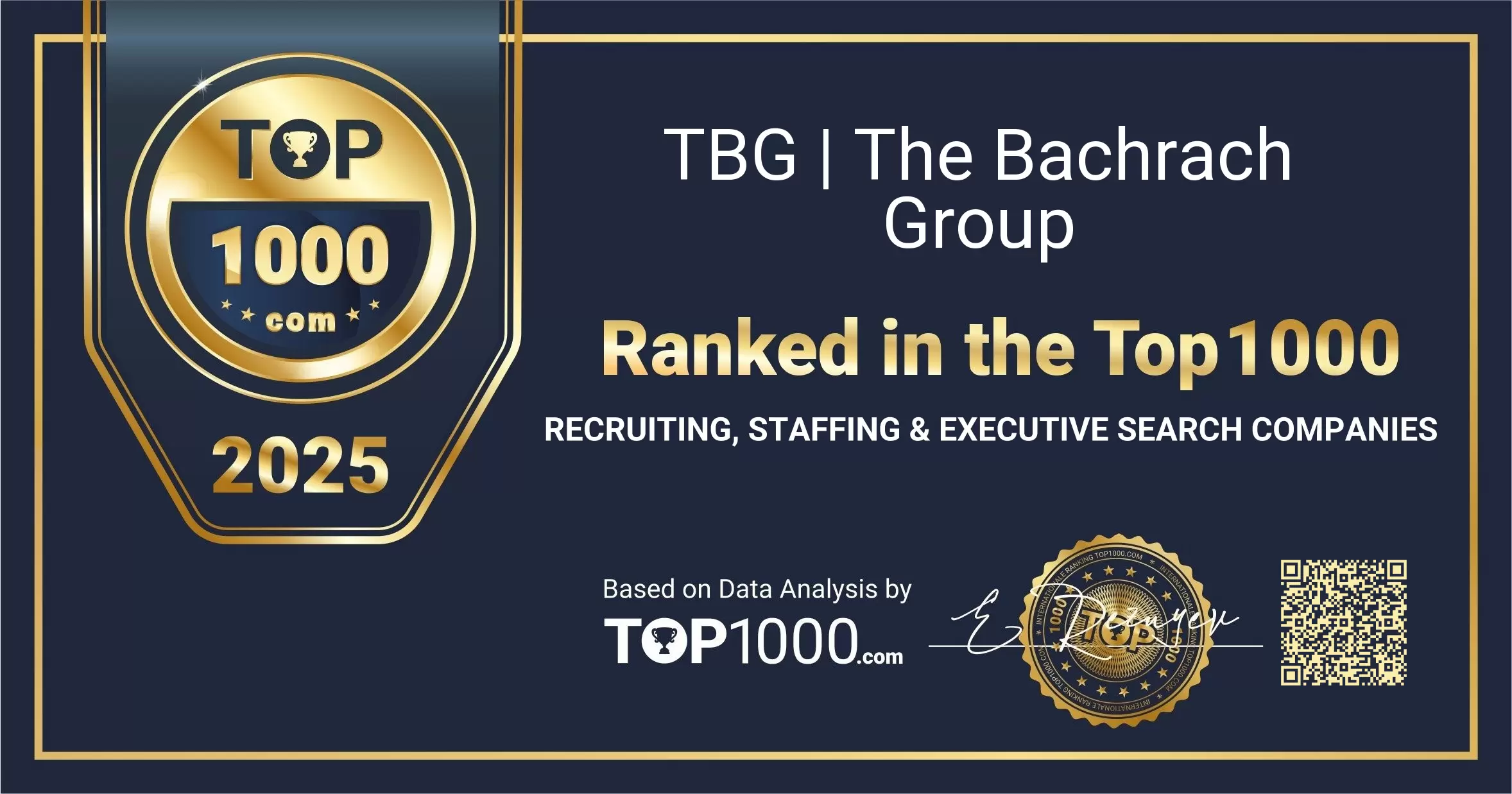 Earning a place among the Top 1000 Recruiting, Staffing & Executive Search Companies reflects strong visibility and trust from both employers and candidates. This recognition celebrates the sustained effort of TBG | The Bachrach Group to support organisations with high-quality talent solutions and to guide professionals through key career moves.