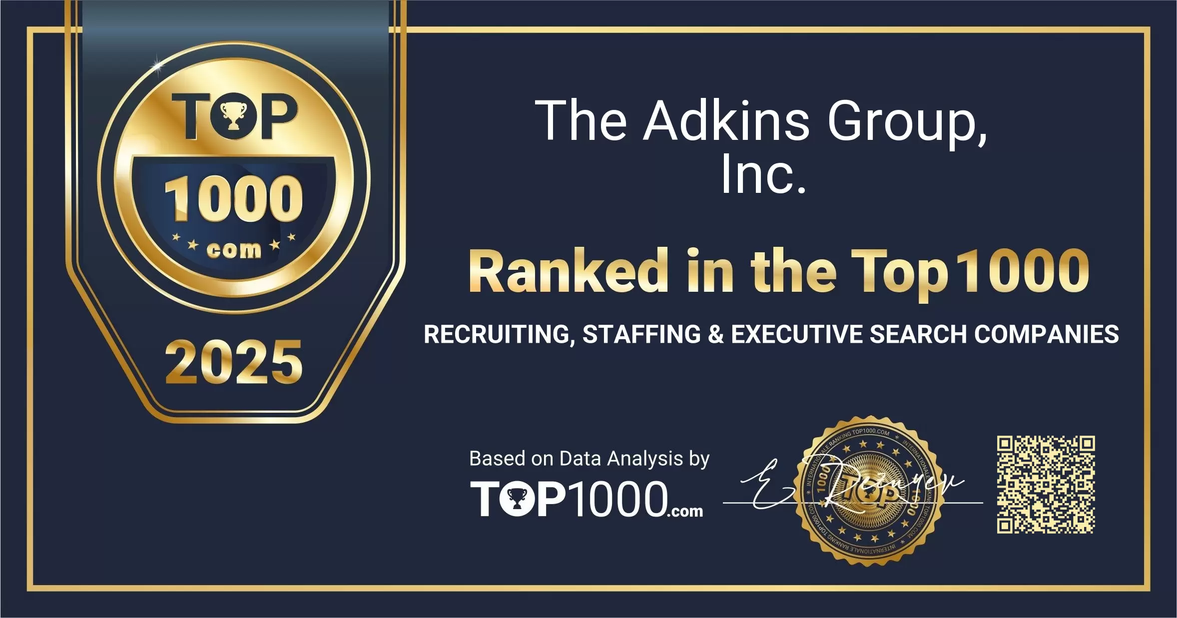 The Adkins Group, Inc. has been included in the Top 1000 Recruiting, Staffing & Executive Search Companies ranking. Use the options below to share this acknowledgement through your official channels.
