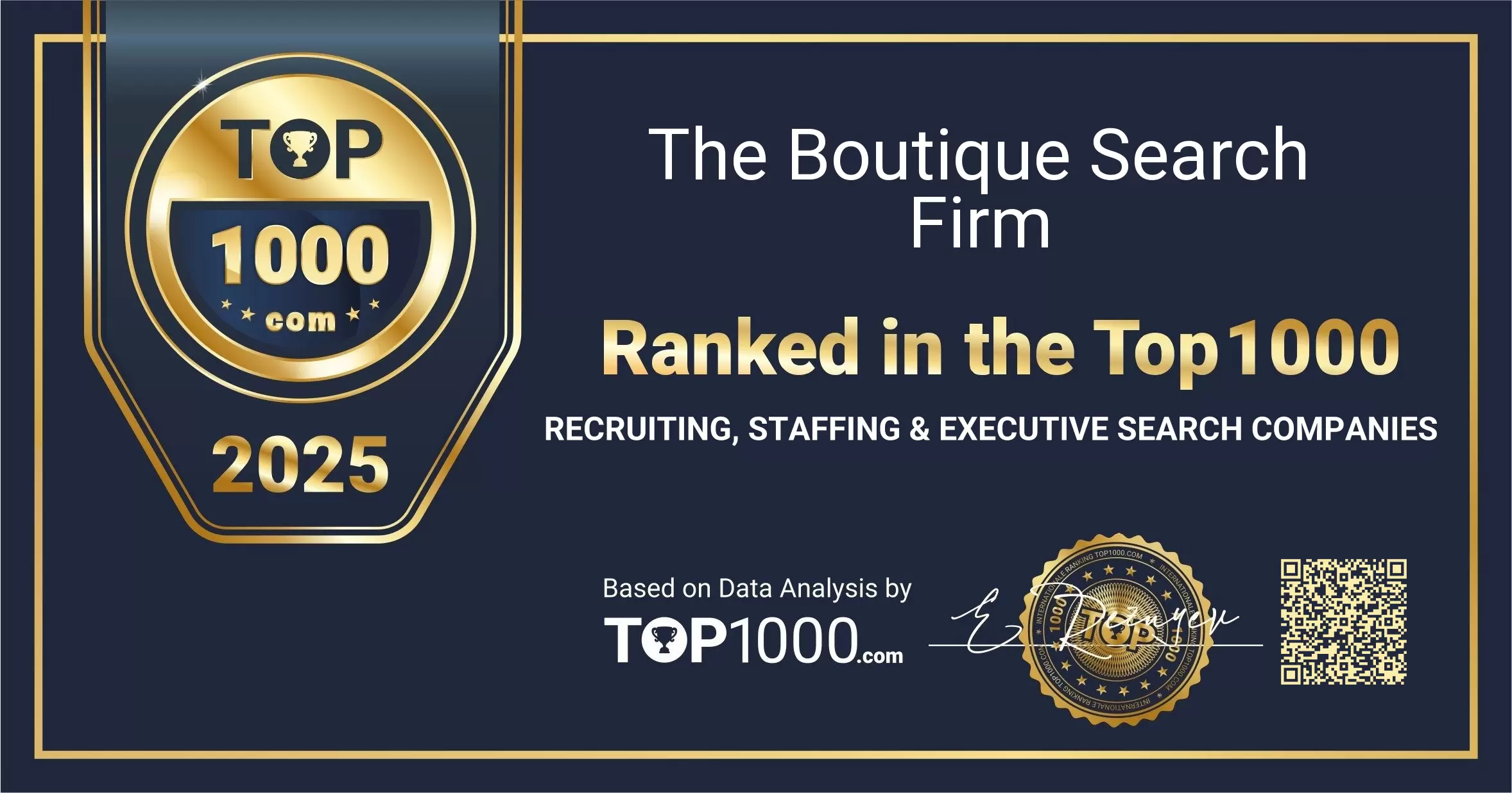 The Boutique Search Firm ranked in the Top 1000 Recruiting, Staffing & Executive Search Companies