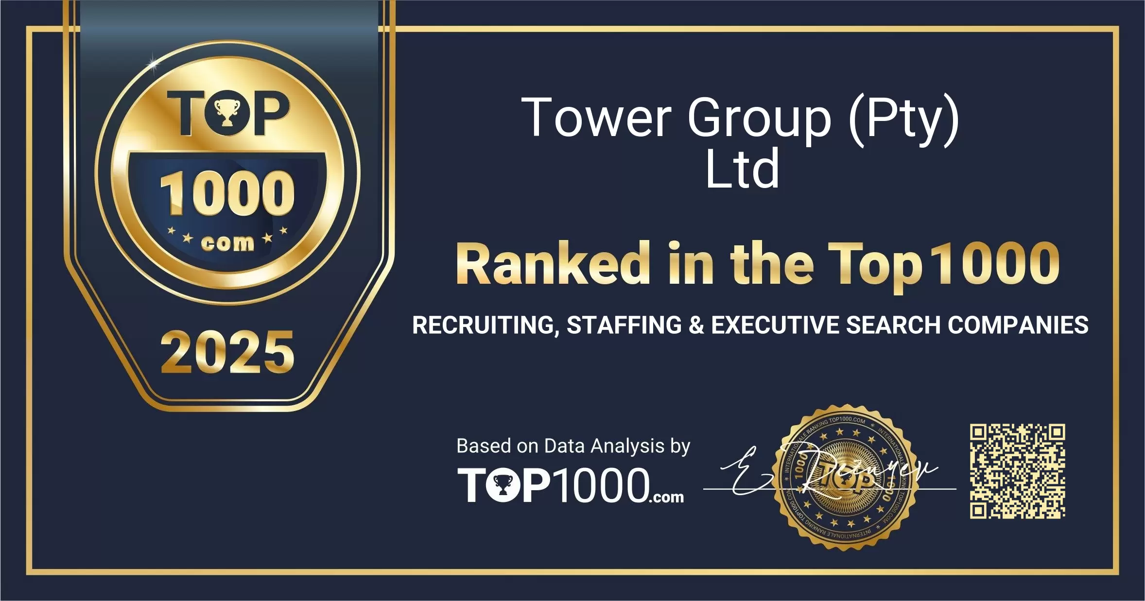 Earning a place among the Top 1000 Recruiting, Staffing & Executive Search Companies reflects strong visibility and trust from both employers and candidates. This recognition celebrates the sustained effort of Tower Group (Pty) Ltd to support organisations with high-quality talent solutions and to guide professionals through key career moves.
