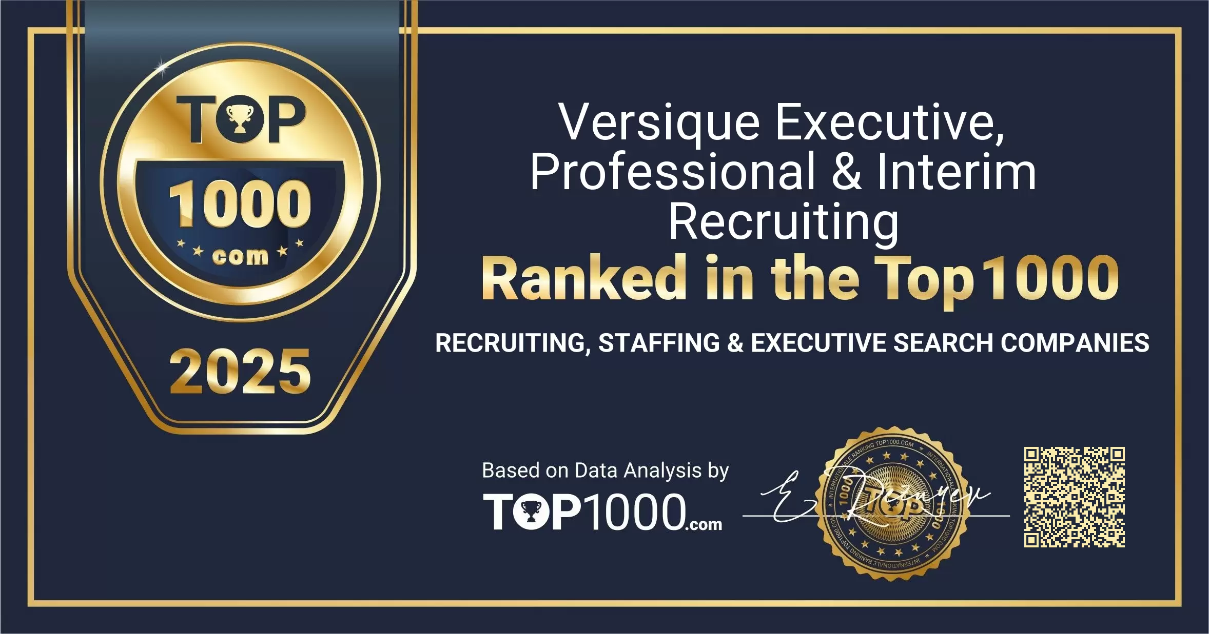 Versique Executive, Professional & Interim Recruiting has been included in the Top 1000 Recruiting, Staffing & Executive Search Companies ranking. Use the options below to share this acknowledgement through your official channels.