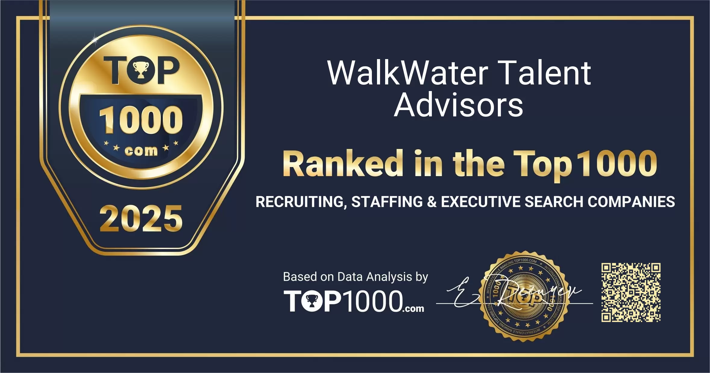 Earning a place among the Top 1000 Recruiting, Staffing & Executive Search Companies reflects strong visibility and trust from both employers and candidates. This recognition celebrates the sustained effort of WalkWater Talent Advisors to support organisations with high-quality talent solutions and to guide professionals through key career moves.