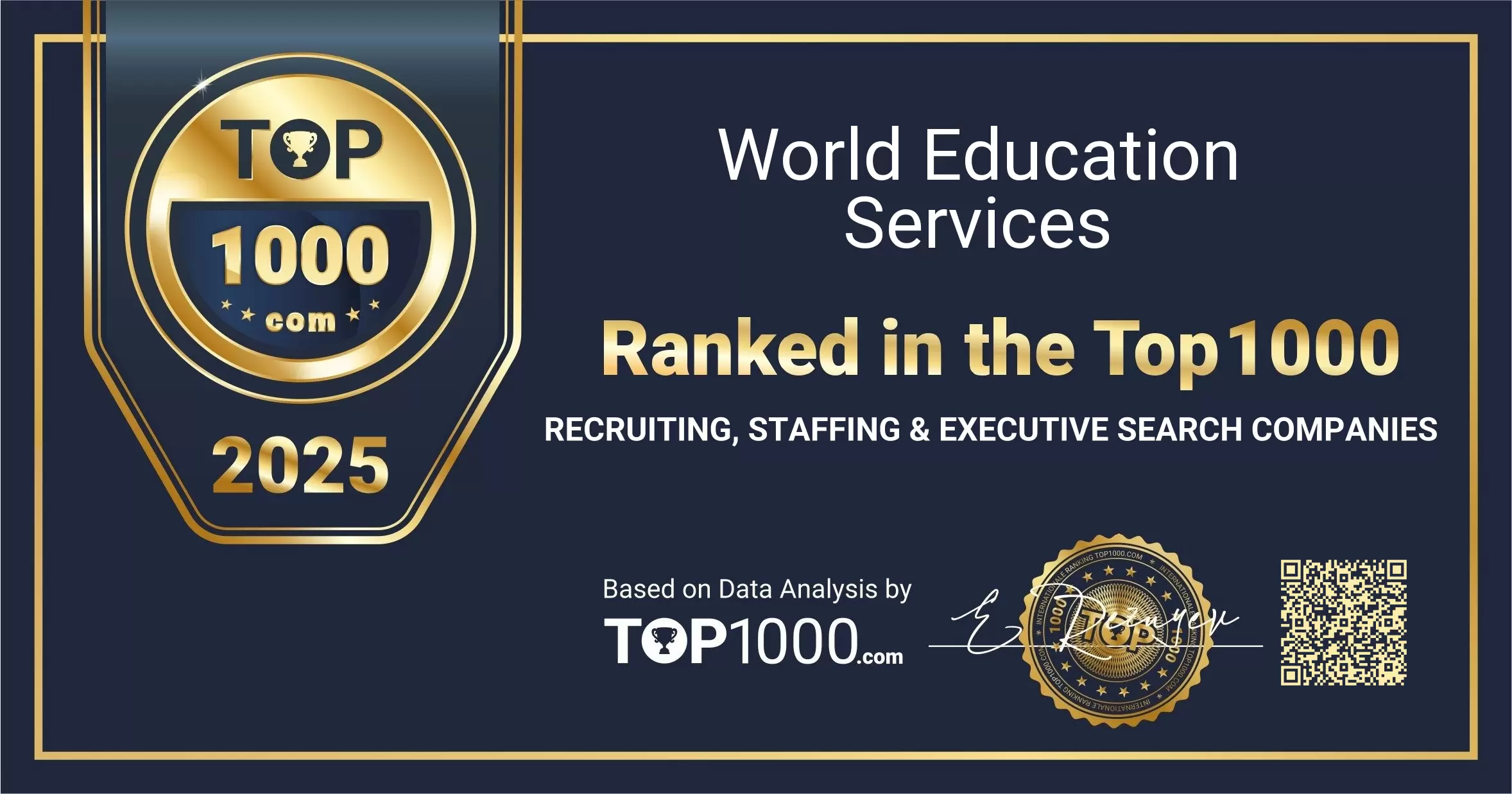 World Education Services ranked in the Top 1000 Recruiting, Staffing & Executive Search Companies